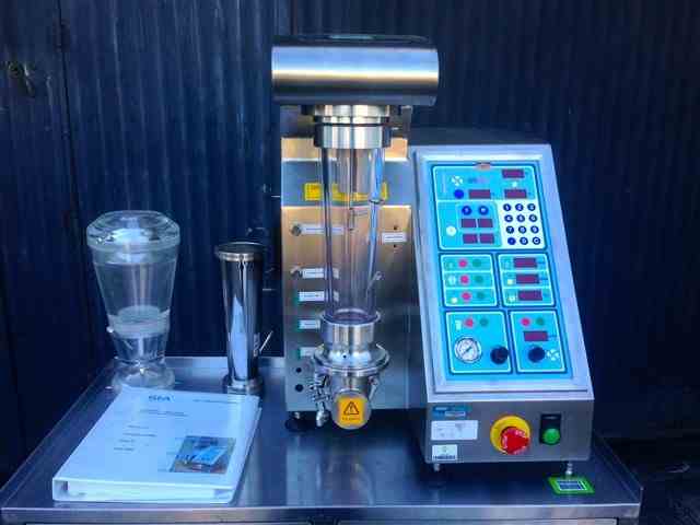 One used GEA Niro MP Micro Laboratory Spray Dryer. Can handle 50-200g of product. Glass and Stainless drying vessels with top down liquid spray option. Precision coating vessel. Made in 2003. Serial 03062.