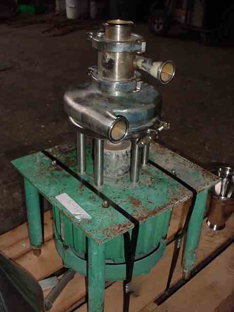 Used 2 HP SANITARY STAINLESS STEEL TRI-BLENDER MIXER, Sanitary 316 stainless steel. Motor 2.5 HP, 230/460-3-60, 3600 rpm, 3.9 amp. Tri-clamp 2" for powders, 1.5" liquid in & out, Top feed cone included. Manufacturer TRI-CLOVER Division of Alfa Laval Model no. 2116MD B40, S/N: 03014.