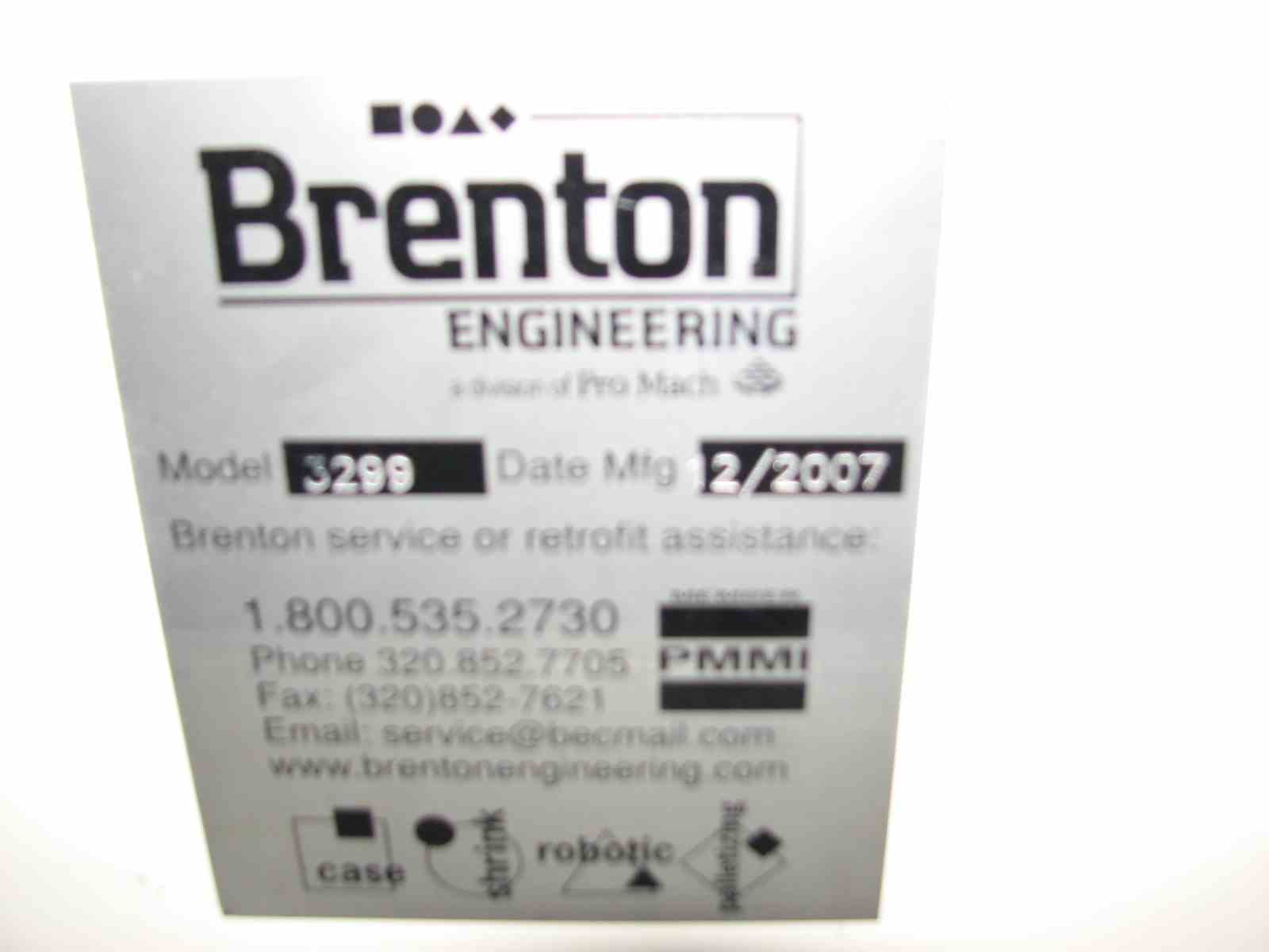 Used Currie by Brenton Low Level Infeed Palletizer. Model 3299. Built 2007.