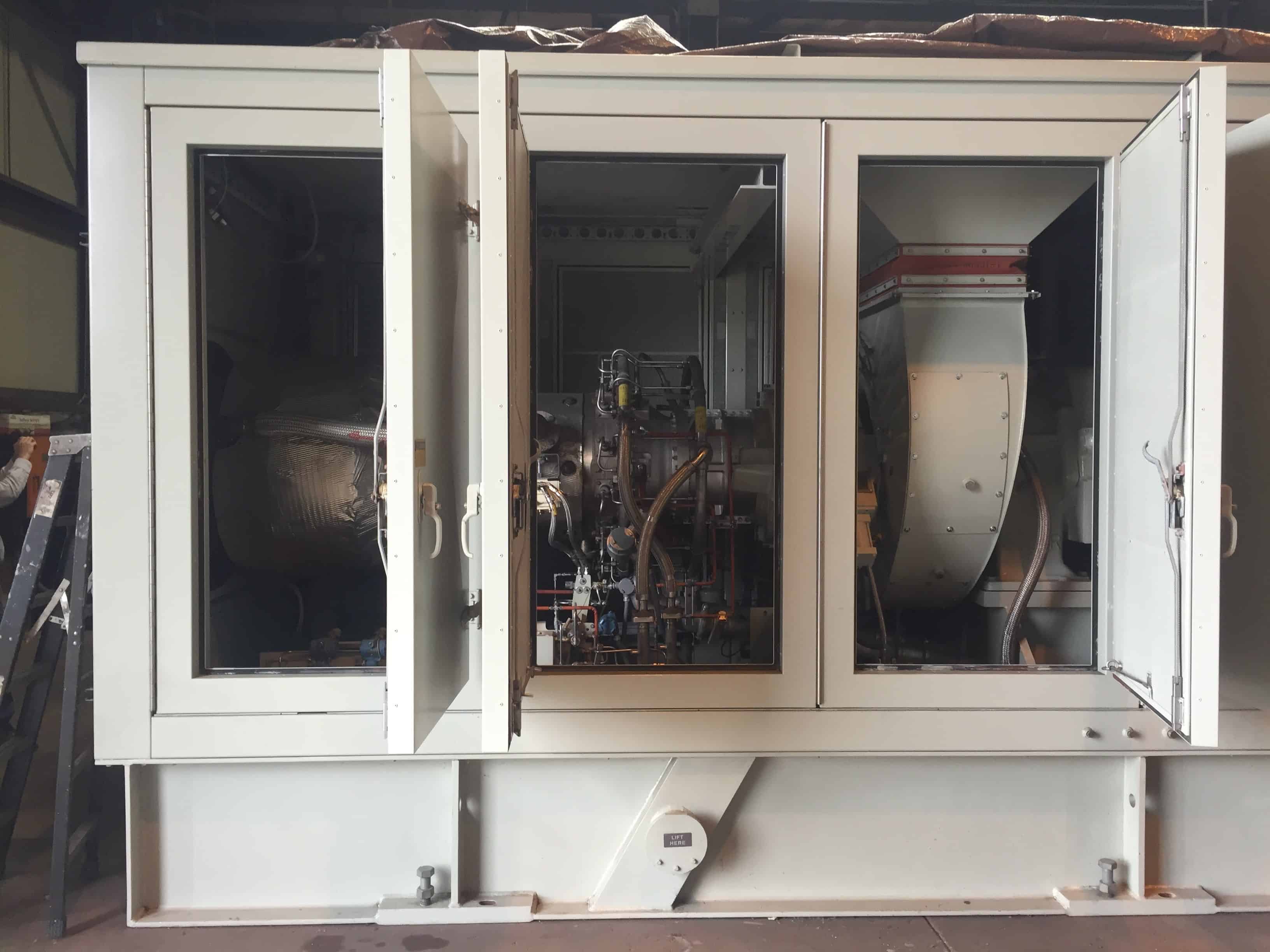Used 5200 KW Solar Taurus 60 T7301 housed generating set, 3/60/4160V set up to operate on landfill gas or natural gas, manufactured in 2001, used until 2007 and stored under Solar care since. Generator rebuilt. Borescope inspection reports available upon request. Auxiliaries included: Lube oil coolers, fire cylinder cabinet, neutral ground resistor, switchgear, Air intake housings, oil filter skids, exhaust spool pieces, turbine exhaust stacks, Donaldson air filters, rain hood skids, air intake ducts, oil heater skids. (Qty 2 Available)