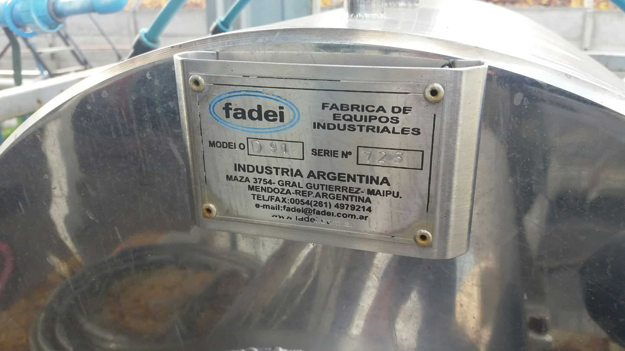 Used Fadei Model D-91 Seed Separator. 304SS. Motor: 30kw/40.2HP. Varied perferations from .5mm to 3.5mm. CIP. 3" Input and 4" output connections. 15-30 TPH. 1200 hours. Serial #723. Built 2010.