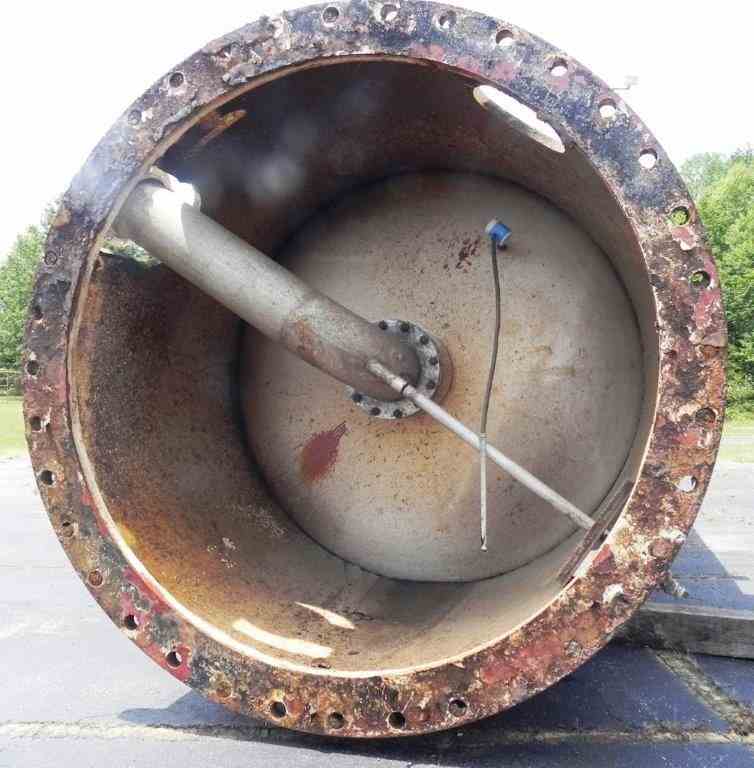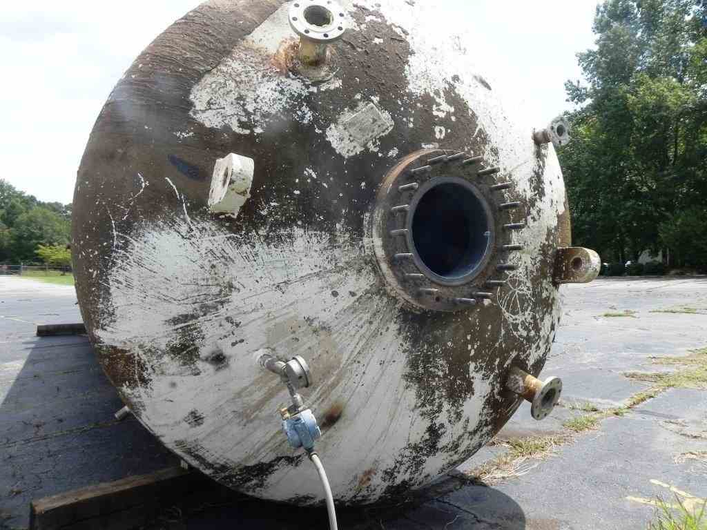 Used 18,000 Gal Vertical CS Pressure Tank, rated 650 PSI @ 300 F. 9'dia x 44'H. 304-SS Clad interior lining. Thickness: Shell: 1.87"; Head: 1.92". Skirt mounted, Lifting Lugs. Mfg by Combustion Engineering, 1980. S/N: 1360, NB# 22666. Wt: 125,000 lbs. U-1 on file.