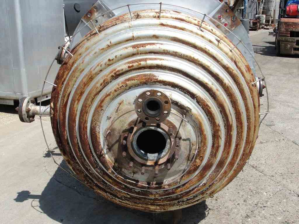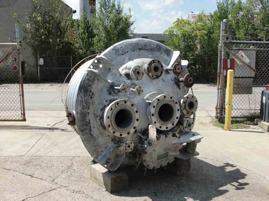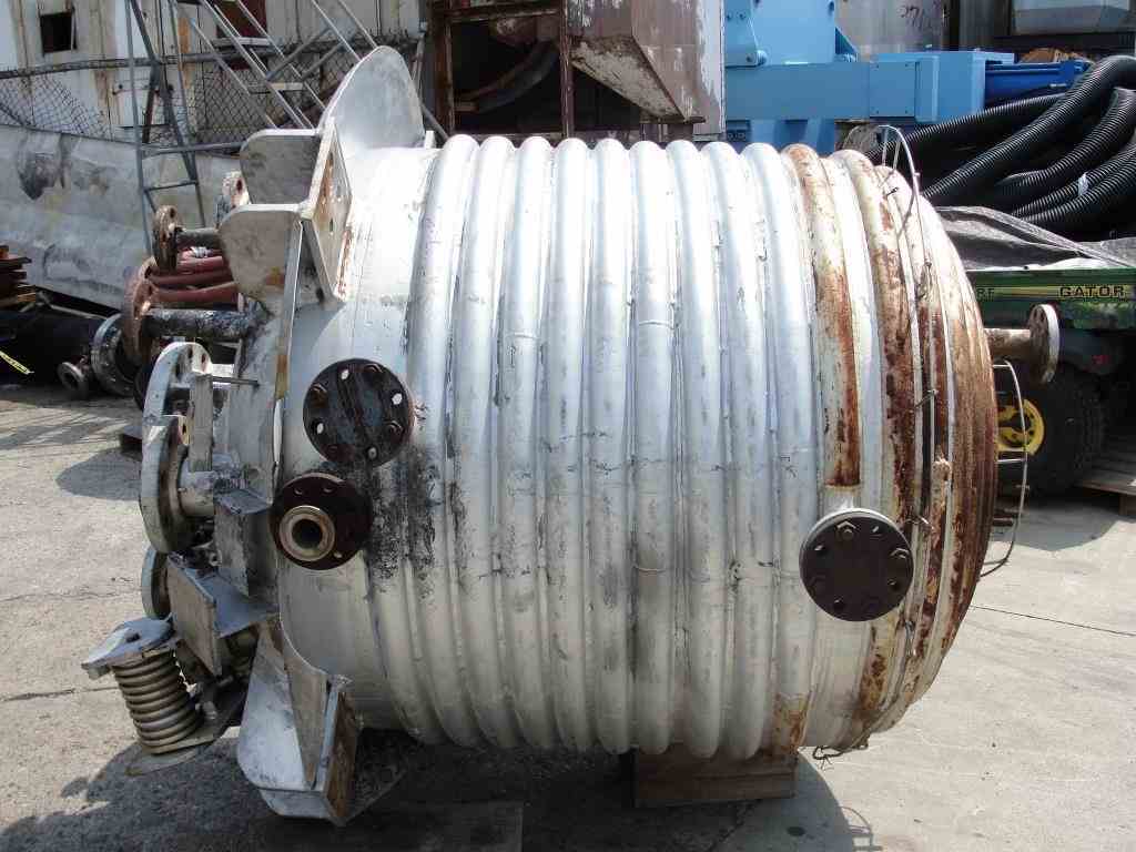Used 300 gallon Stainless Steel Reactor Body, Mfg. by Trinity Industries. 48" inside diameter with 36" straight wall. OAL of vessel 72". Stainless steel contact parts, carbon steel jacket. Interior rated 300/FV PSI at 600 F. Two zone 2" half pipe jacket rated at 200 PSI at 650 F. TOP has 16" x 12" manwy cover with spring assist and swing out bolts. Top also has (1) 8" 300 lb flange- center top mounted, (1) 8" , (1) 4", (1) 3", (3) 1.5", (1) 1", (1) 3/4", and (2) 1/2" flanges. Bottom has a 6" pad flange for center bottom discharge. Vessel has four supports for mounting reactor on a mezzanine. ASME F & D dished bottom and top. Unit was built 1995. Serial number 01-119. National board no. 6595. Altered by Enerfab in March 2003, Repaired by Welding Services August 2005. Good condition.