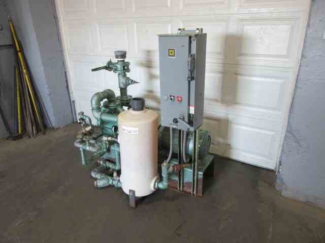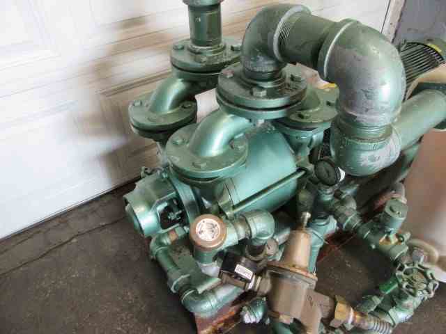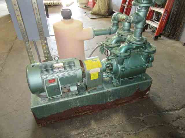 Used 15 HP Robushi Liquid Ring Vacuum Pump, Model RVM 1902 XC, Serial number K0252 SA. 15 HP motor, 208-230/460 voltage, 3 phase-1450 Rpm. Approx. 200 CFM. On steel plate with piping. Includes motor starter and disconnect. Includes stop start button. Data curve chart available upon request.