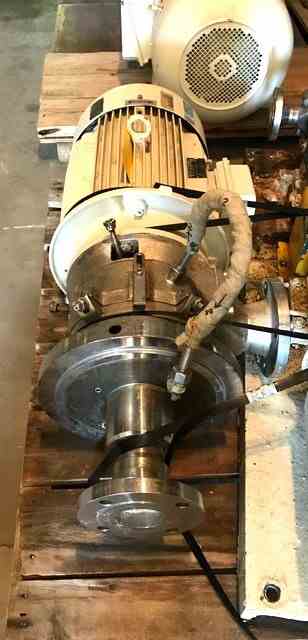Used Fryma Koruma MZ-130/B Stainless Steel Toothed Colloid Mill for milling, dispersing and homogenizing liquid to highly viscous materials. Capacity range approx.: 700 - 7,000kg/hr. Product fineness approx.: 100 - 500um. Motor is 22kw (30 HP), 3540 rpm, 460 volt. Built 2003. NOTE: Gap is adjustable by spacer discs, not the standard mill design.