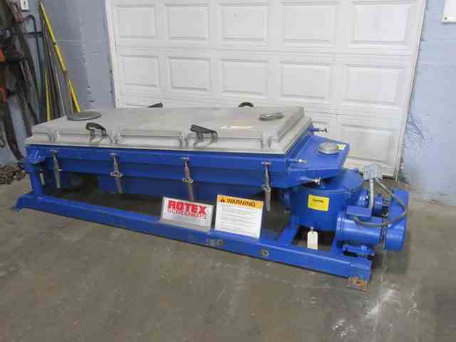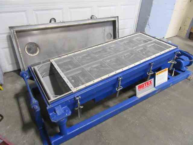 Used Rotex 30" x 60" Screener, Model 202A AAMI, Serial number U207027A. 2 deck (3 discharge spouts).» Aluminum top cover with quick release handles. Aluminum frames, screen has auto-tension springs. 1/4" Top screen includes ball deck.(anti blinding)