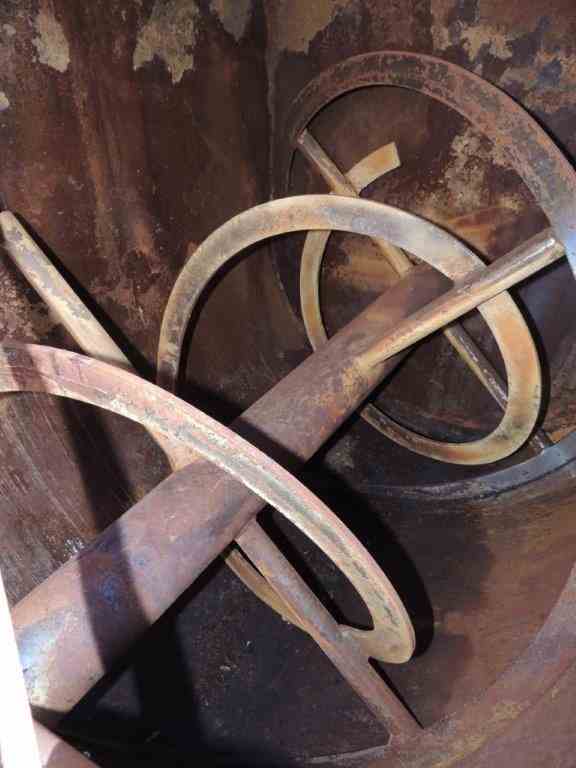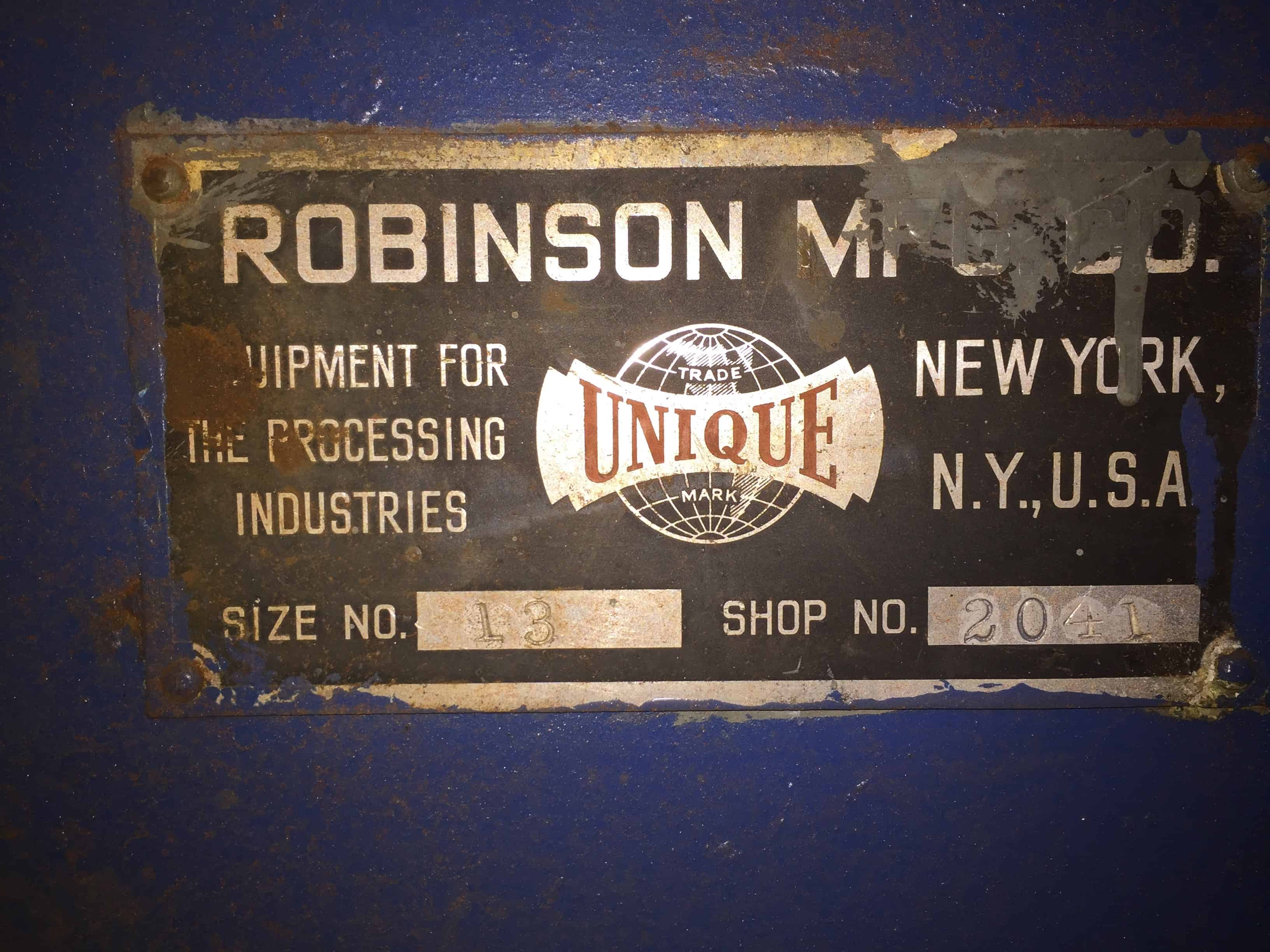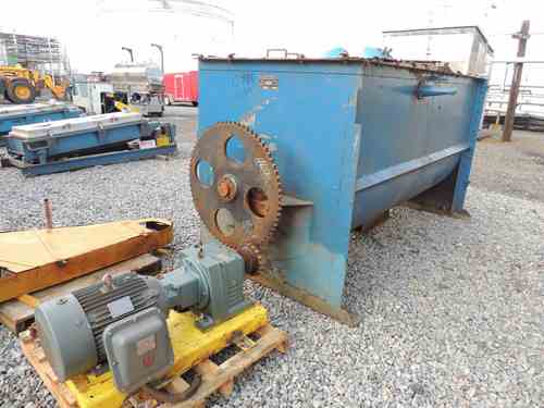 Used Robinson Ribbon Blender. Approx 165 Cu. Ft. 15 HP, 230/460 XP Motor. Dimensions: 10'L x 4'8"W x 5'6"H. (2) Top Doors 52"W x 49L. (1) Top inlet 19"W x 32"L x 3.5"H. (1) inlet 10"W x12"L x3.5"H. (1) Bottom outlet 17" x 27" with 10"Dia outlet. Size 13. Shop #2041.