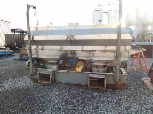 Used Witte 24" x 12' Vibrating Fluid Bed Cooler with Air Supply. 304SS. M-5 Witte vibrator. 1.5HP Motor. 12'L x 3'W x 4'H. Chicago Blower Model SQA CL1 with 7.5HP motor. Serial #FP-0986. Witte Job #5328. Built 1998. Manual and Drawings.