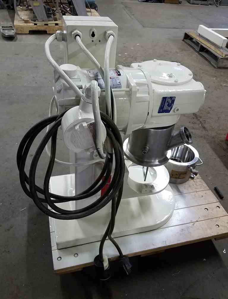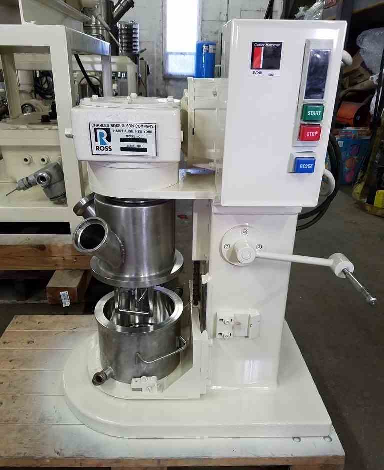 Used Ross Model LDM-130 Vacuum, Jacketed Double Planetary Mixer, stainless steel construction, 1/2 to 1 quart mixing capacity, 1 quart total capacity, stainless jacketed mix can with stainless steel jacket, Stainless steel Gearbox, Quick Release Blades, unit driven by 1/2 Hp., 3/60/208-230-460 volt explosion proof motor, hand crank lift, Serial#53327A.