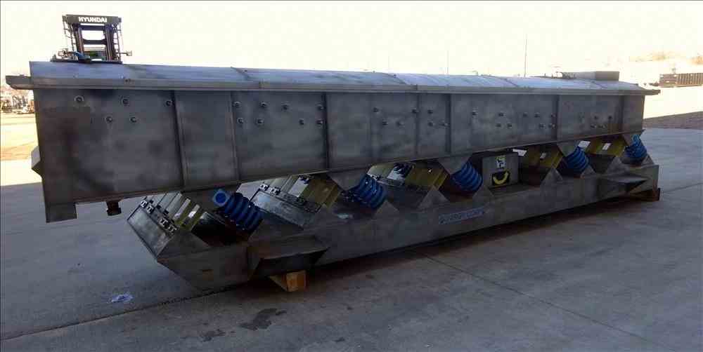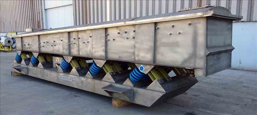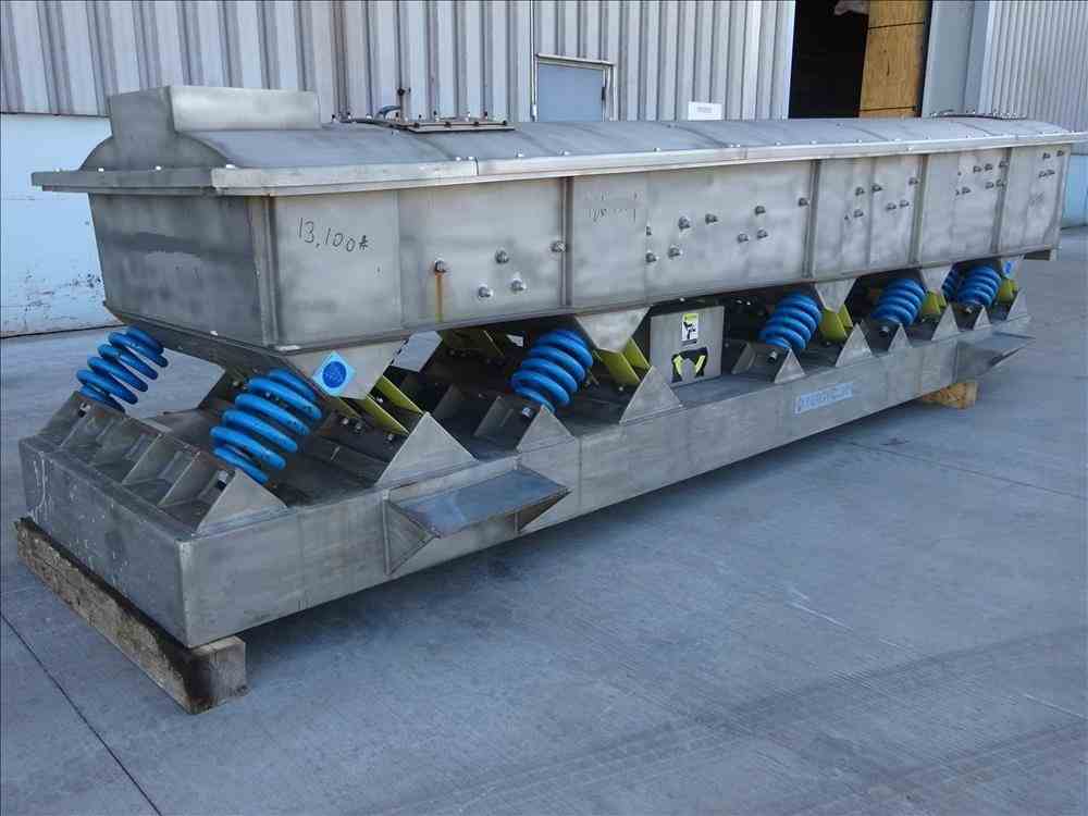 Used Kinergy Corporation Dust Tight Vibrating Screen. Model KDSNBD-36 HDDT. 304 Stainless Steel. Trough approximately 3' wide x 16' long, with dust tight bolt on top cover. Driven by a 1 hp, 3/60/230/460 volt, 658 rpm motor. Single deck, 2 separation. 3/16" screen holes. Mounted on a stainless steel frame. Serial# KDSN-9198.