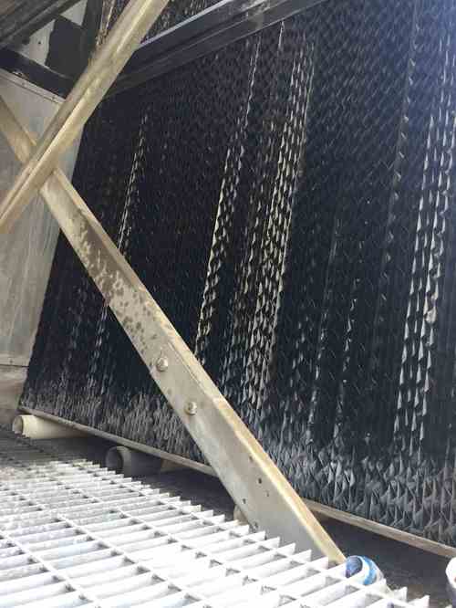 Used 4500 GPM 2-cell Marley cooling tower. Model #NC8311-G2BG. With 3-150 HP (each) circulating pumps. Hot Water 95F, Cold water 85F. Wet Bulb 79.55F. Fan pitch 15.5. Serial #815953-A1 and 815953-A2. Built 2008. Reconditioned 2013. Dimensions: 11'10"L x 19'10"H x 22'4"W. approx 35000 lbs total.