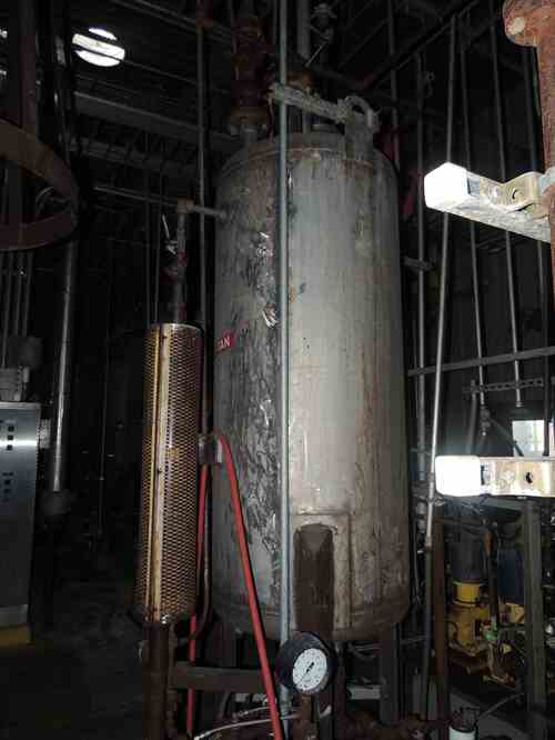 Used 200 gallon vertical 304 stainless steel tank. Mounted on (3) legs. 15 psi/fv @125 Deg. F. 30" dia x 5'6" straight side. Weight 604 lbs. Built 1977