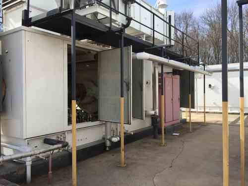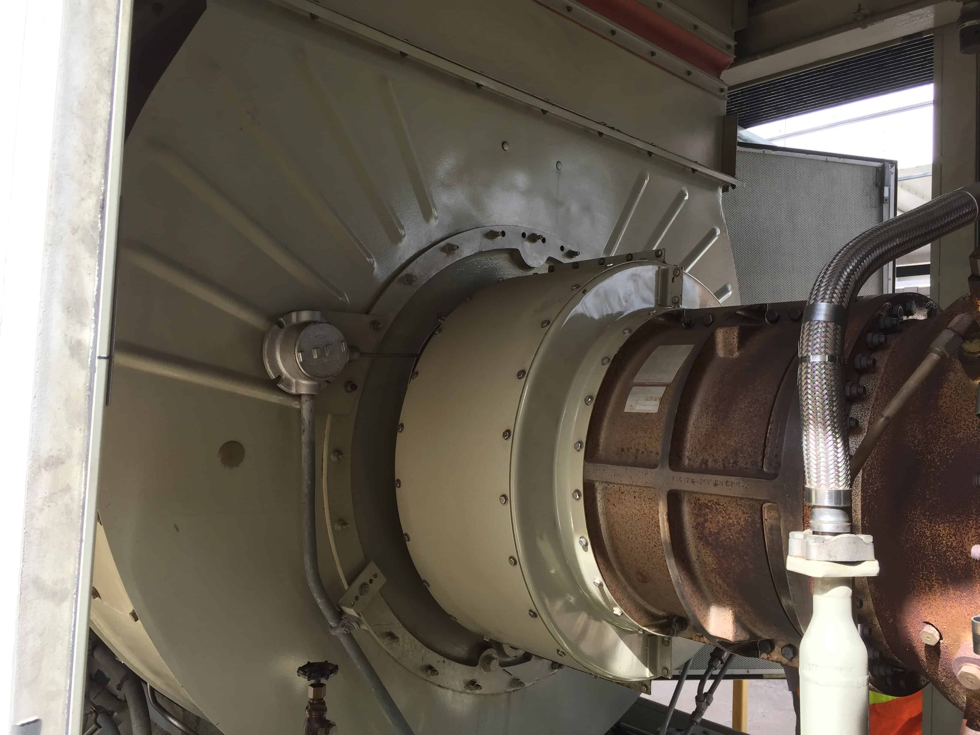 Used 4 MW Solar Centaur Type H Gas Turbine Generator Set model GSI-CH-ID, designed for to operate on kerosene, built 1986. Fully enclosed. 3/60/4160V. Auxiliaries included: Lube oil coolers, fire cylinder cabinet, neutral ground resistor, switchgear, Air intake housings, oil filter skids, exhaust spool pieces, turbine exhaust stacks, air filters, rain hood skids, air intake ducts, oil heater skids, air tank (approx 8,000 gal, 562 psi. Unit 2: Package Serial # HG86O17, Engine Serial # 0022H53. approx 1400 package starts / 3,000 package hours / 1400 engine starts / 3000 hours