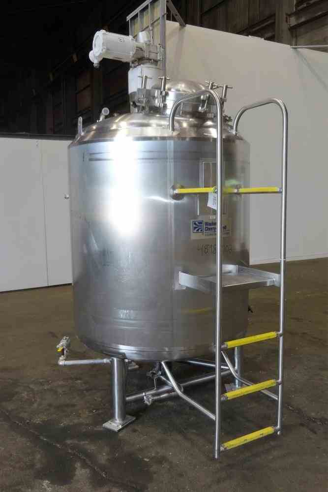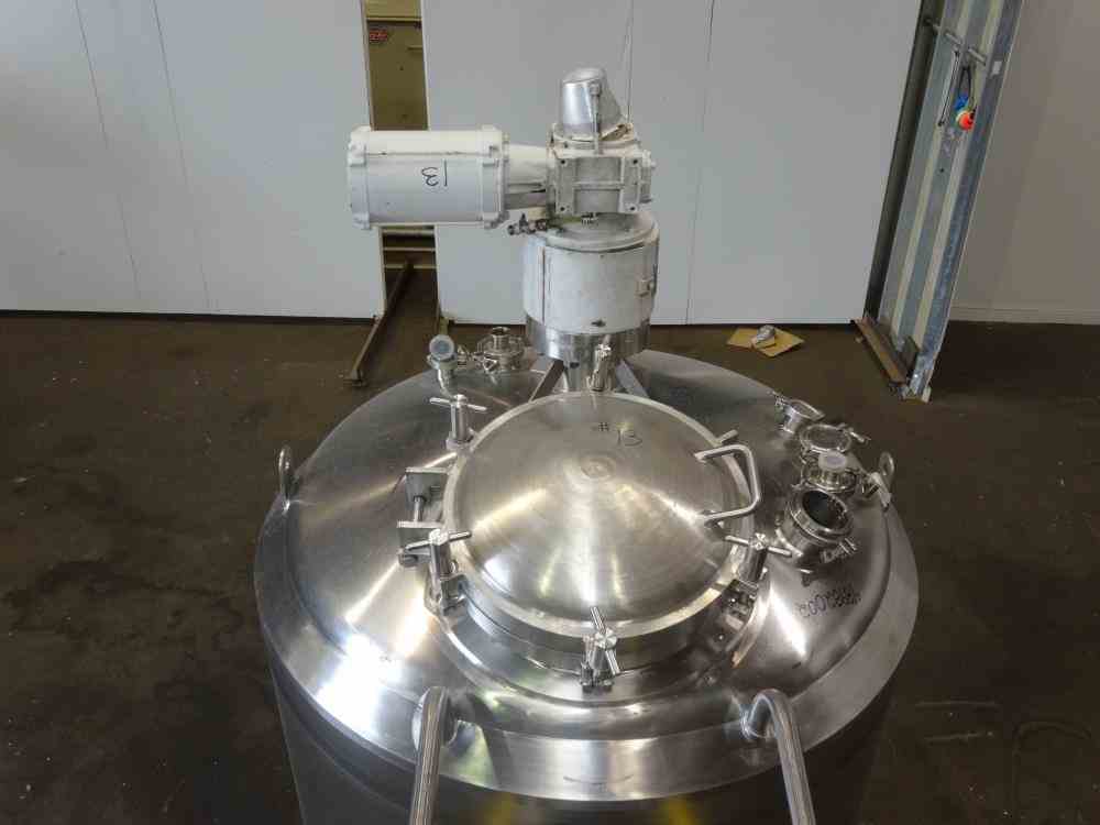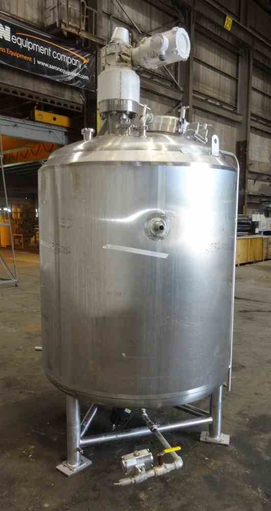 Used 462 Gallon Waukesha/Cherry-Burrell Reactor. 316 Stainless Steel. Vertical. Approximate 48" diameter x 52" straight side, dished top and bottom. Internal rated 50 psi at -20 to 350 degrees F. Jacket rated 100 psi at -20 to 350 degrees F. Top entering 2-blade agitator, approximate 1-1/2" diameter shaft, driven by a 1hp, 3/60/230/460 volt, 1750 gear motor. Openings top: 18" manway with cover, 5", 4" with sight glass, (3) 3", (2) 2", (1) 1-1/2". 2" Center bottom outlet. (2) Spray balls. Mounted on (3) legs. National Board# 4510, Serial# E-466-95, Built 1996.