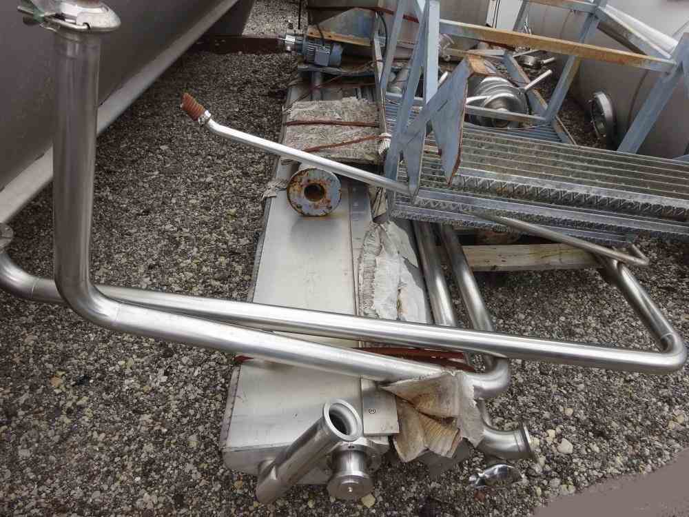 Used TMCI Padovan Taylo Pre-Coat Rotary Vacuum Filter. All 304 stainless steel product contact parts. 40" Diameter x 13' roll face stainless steel drum, stainless steel trough with rack agitator driven by 0.75, 480 volt motor, stainless steel advancing knife discharge with drive system, 0.75 kw, 480 volt variable speed drum motor drive, approximately 0.42-2.4 rpm drum speed. Traviani vacuum system with (2) 21.3 kw, 480 volt carbon steel liquid ring vacuum pumps with approximately 500 gallon stainless steel filtrate tank, 38" diameter x 96" straight side, dish top and bottom with 4 kw, 2.5" x 2" stainless steel discharge pump, gallon stainless steel slurry feed tank, 47" diameter x 40" straight side sloped bottom, open top, flat bottom mounted on stand with feed pump, with control panel.
