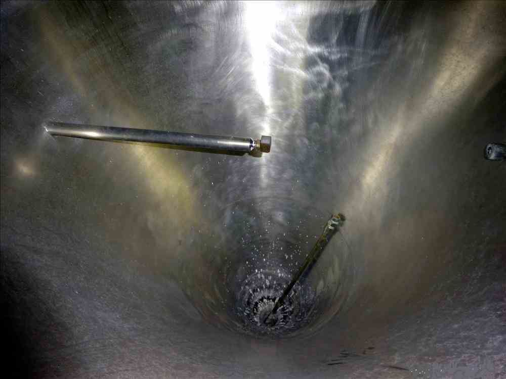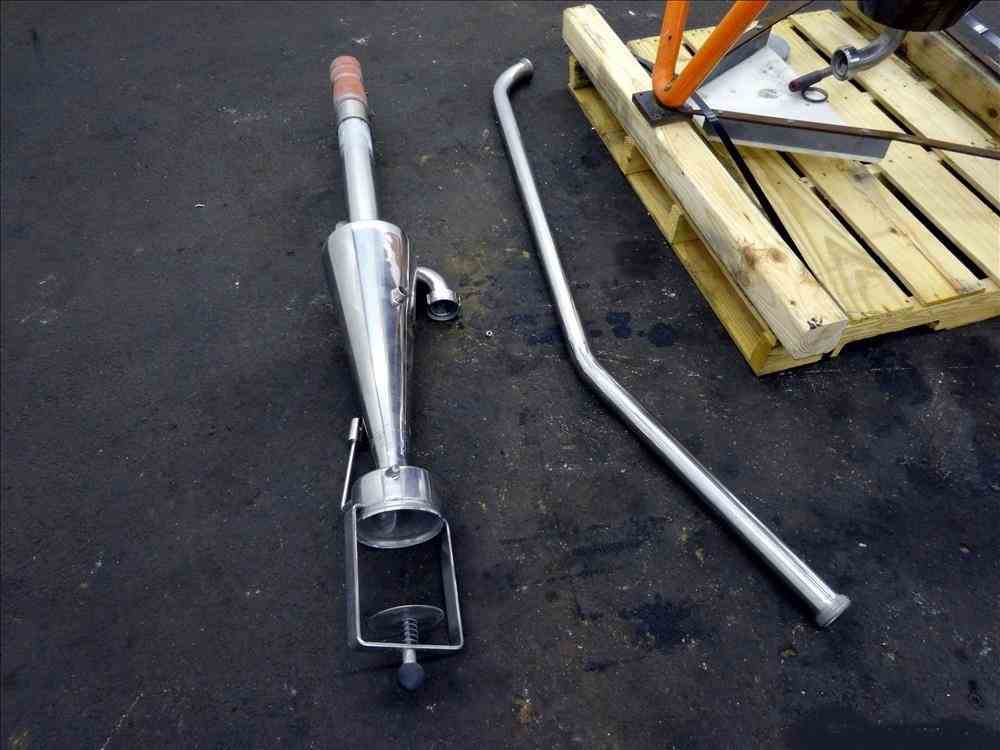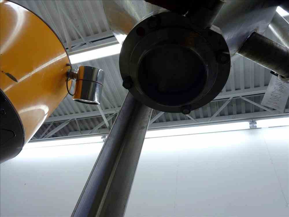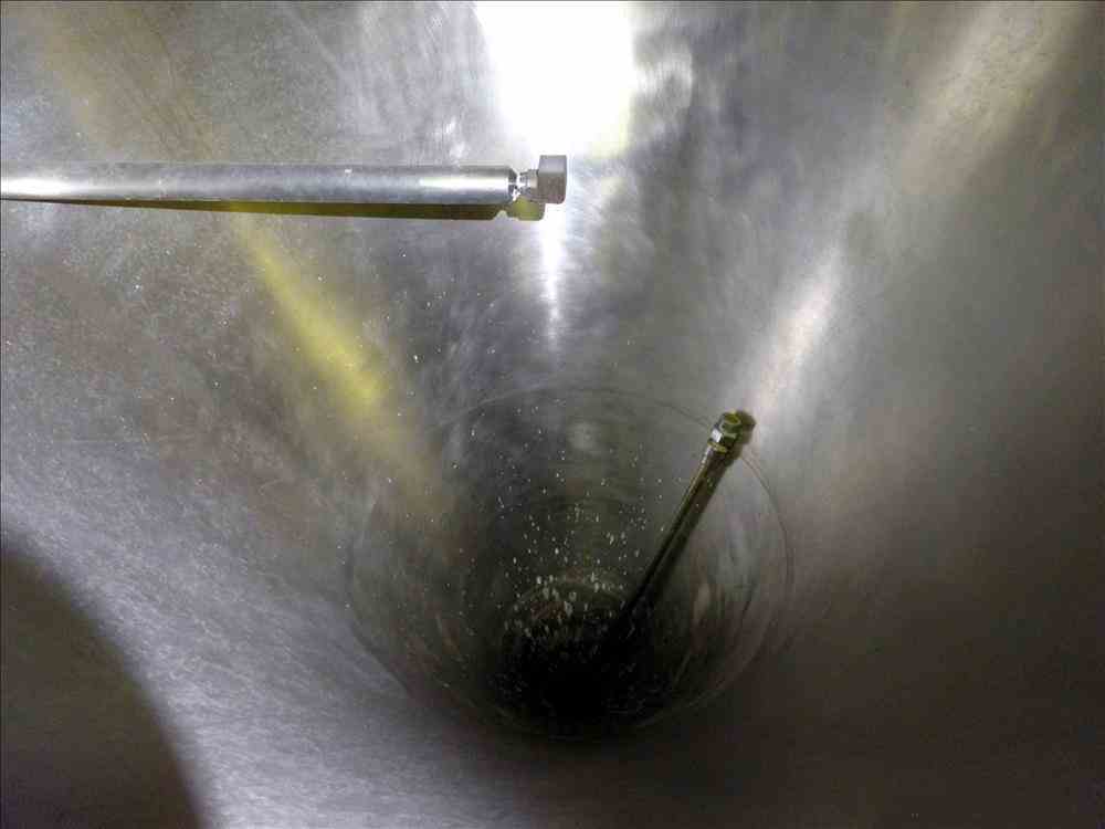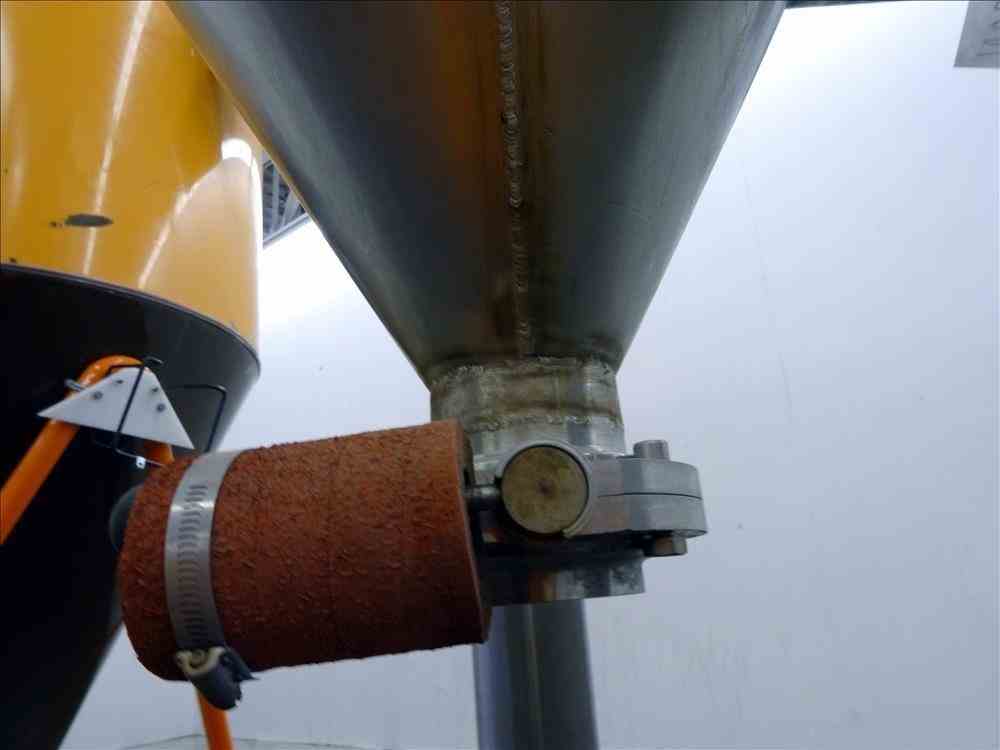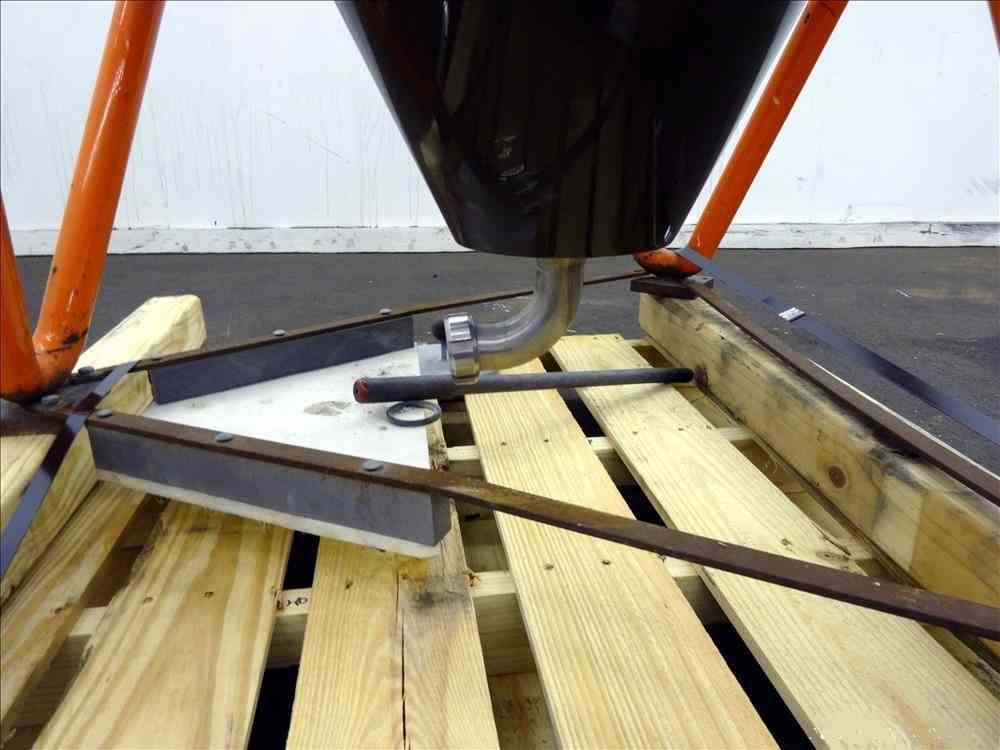 Used APV Anhydro Electrically Heated Laboratory Spray Dryer, Model Lab-S1, 316 Stainless Steel. Evaporation rate at inlet/outlet temperatures 570/195 degrees F. approximate 15 pounds per hour. Chamber 39" diameter x 28" straight x 42" coned bottom, bottom up atomization with nozzle. (1) Side inspection door 20" x 14" with sight glass. 5" Top inlet, 2" bottom outlet. Includes a cyclone, no collection jar, and a 304 stainless steel dust collector. Approximate 24" diameter x 36" straight side x 20" cone x 8-1/2" top plenum. Mounted on carbon steel frame. Serial #25044. Built 1989.