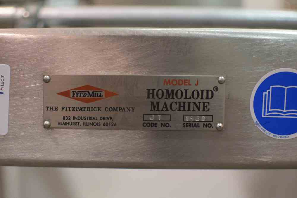 Used Model JT Fitzmill, Homoloid Machine. Serial #: 1539. Stainless Steel. 5 HP Drive Motor, 230V, 3PH, 3490 RPM.
