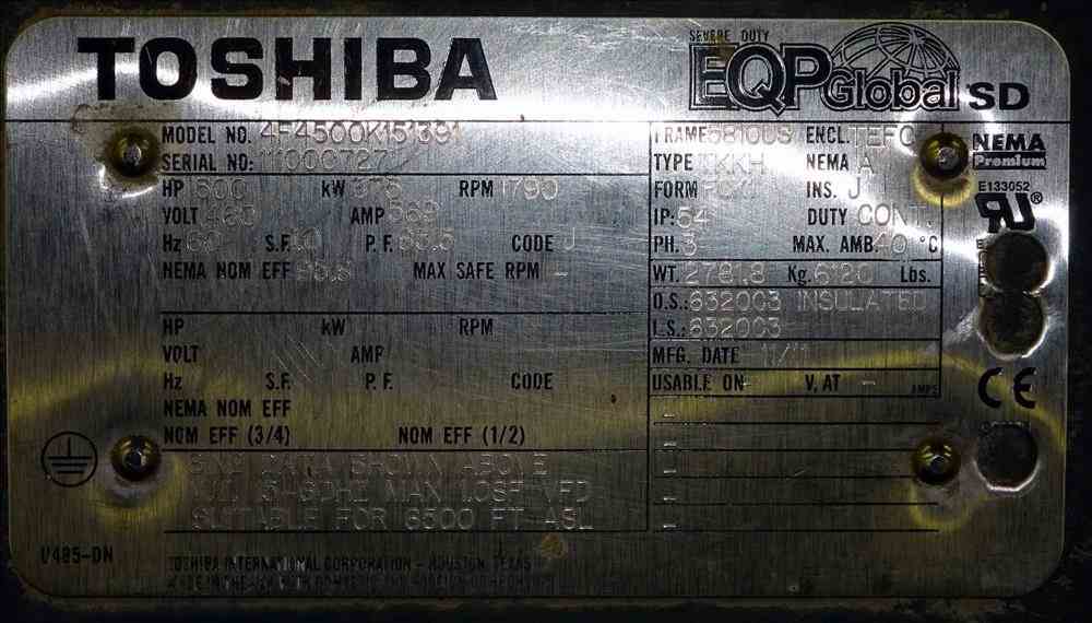 500 HP Toshiba 4F4500K151391 Motor
