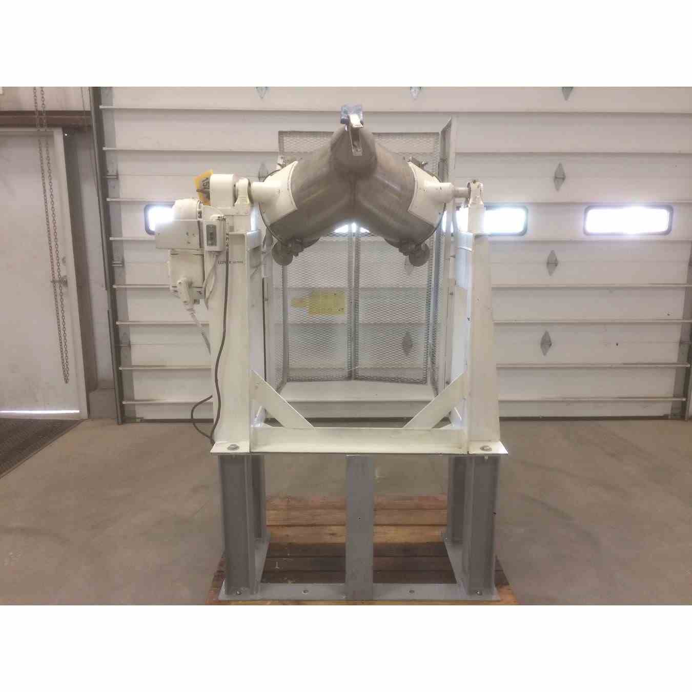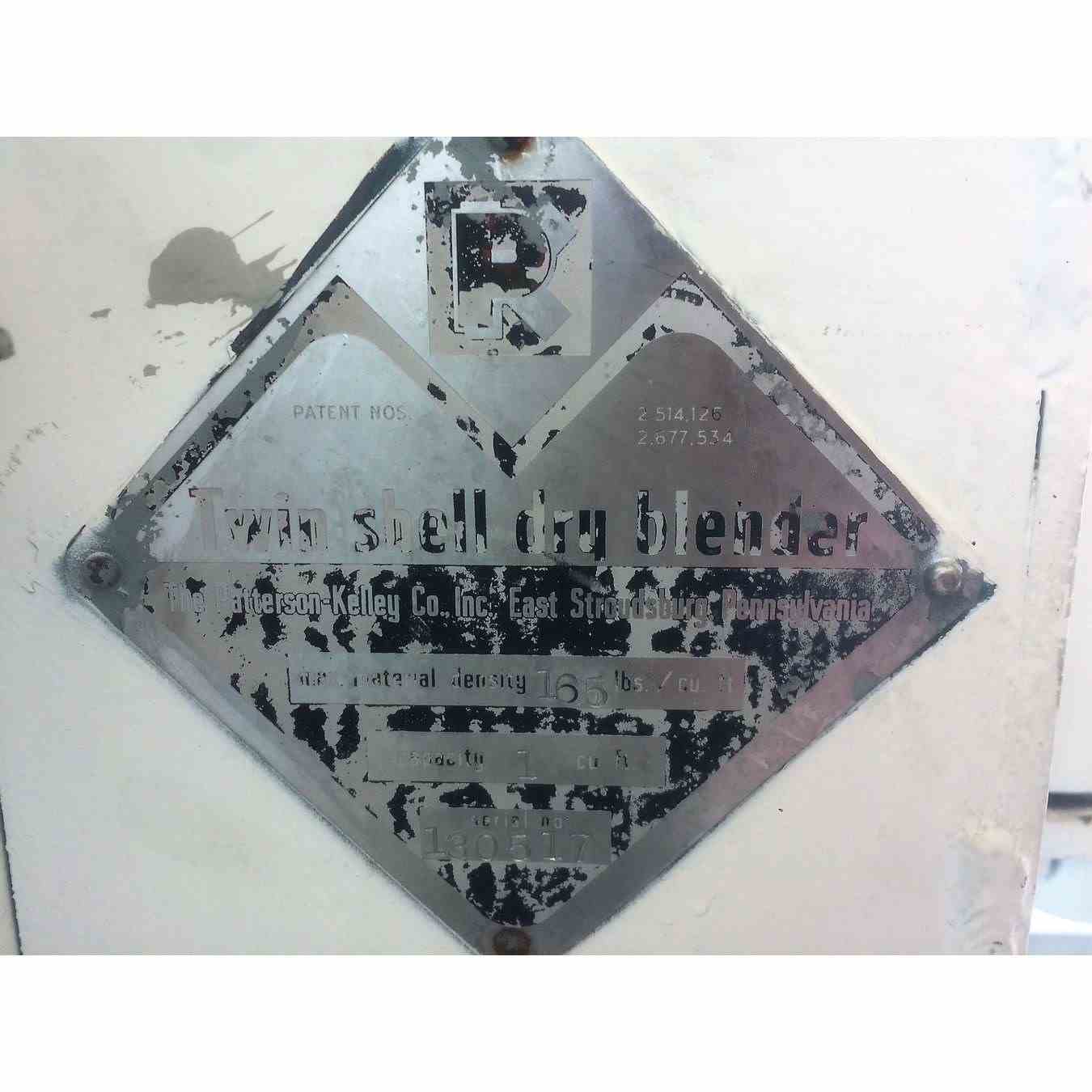 Used 1 Cu Ft Twin Shell Patterson-Kelly stainless steel dry V-blender. 1/4 HP, 110/230V/1/60. Max material density is 165 lbs per cubic foot. S/N 130517. Shipping info: One skid, 55x50x78. Weight: 653 lbs.