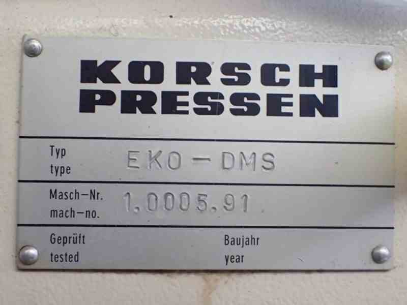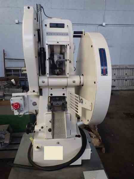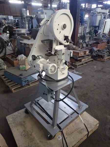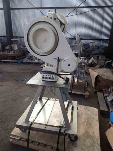 One used Korsch Model EKO-DMS. This is a single station tablet press, maximum tablet diameter 20 mm, maximum depth of fill 20 mm with a maximum compression pressure 30 kN. Unit is rated up to 60 tablets/minute. Electrical .37 kw, 220/380 volt, 60 hertz.