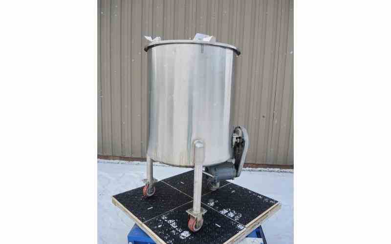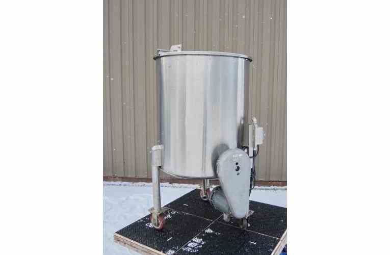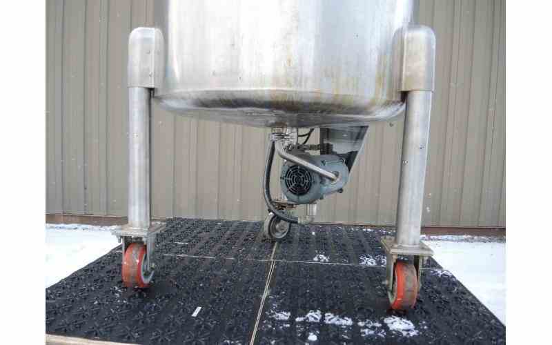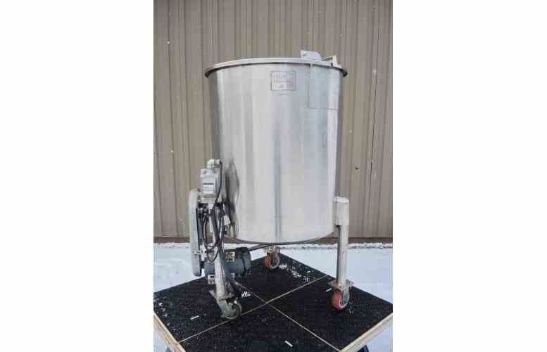 DISH BOTTOM WITH 1"CENTER DISCHARGE. WITH SIDE ENTRY MIXER. MOTOR: 1/3 HP, 208/230 VOLT, 1725 RPM, STAINLESS STEEL MARINE STYLE PROPELLER, 6" DIAMTER. TANK IS ON CASTERS. 60" OVERALL HEIGHT. ALL STAINLESS STEEL CONSTRUCTION. PREVIOUS USE: PHARMACEUTICAL.