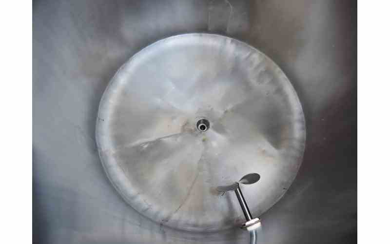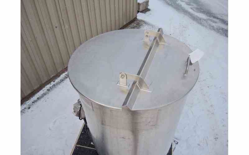 USED 105 GAL STAINLESS STEEL TANK, TANK WITH SIDE ENTRY MIXER. DIMENSIONS: 29.5" DIAMETER X 35" STRAIGHT SIDE. OPEN TOP WITH HINGED LID