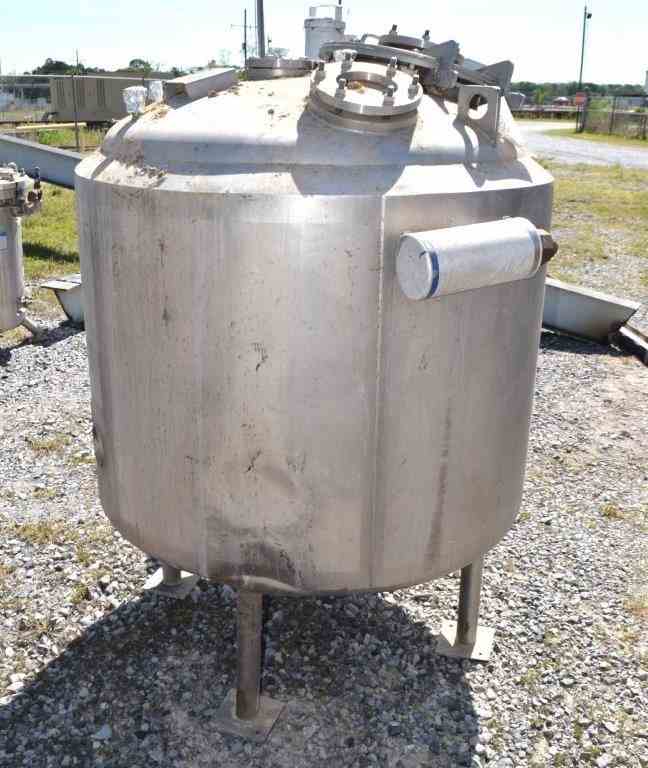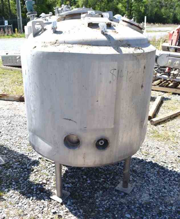 Used- Northland Stainless Reactor, 200 Gallon, 316 Stainless Steel, Vertical. 42" Diameter x 30" straight side, dished top and bottom. Internal rated Full Vacuum and 20 psi at 260 degree F, carbon steel jacket rated Full Vacuum and 20 psi at 260 degrees F. Openings top (7) 2" tri-clamp, 3", 5" sight glass, 15" man way with a 5" sight glass in cover. 2" Tri-clamp center bottom outlet. Mounted on 4 stainless steel legs. National Board #34, serial# 76448-2, built 1976.