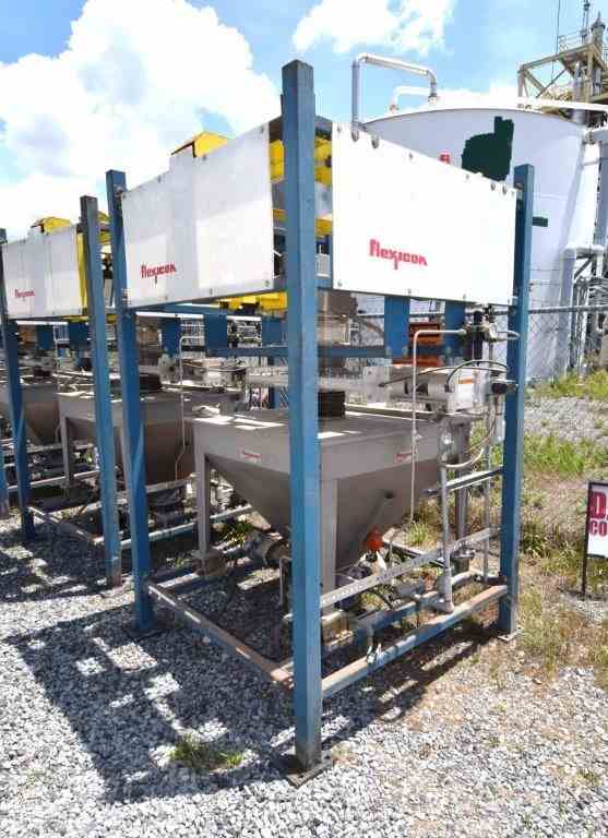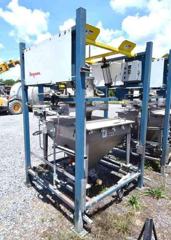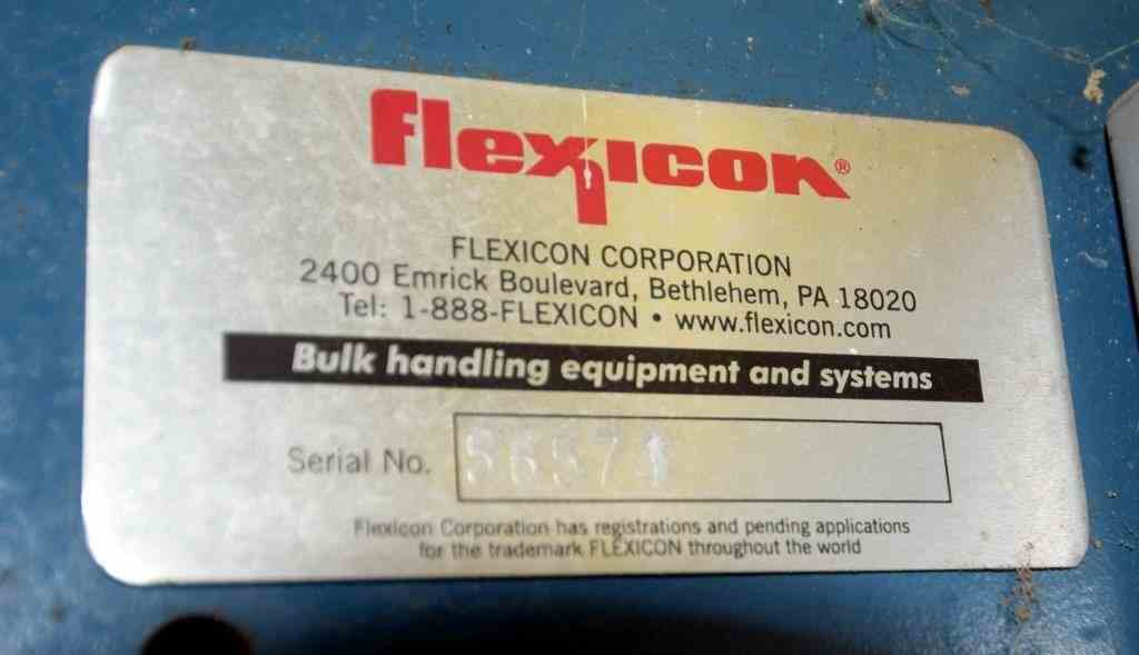 Used Flexicon BFH-C-X Half Frame Bulk Bag Discharger Frame. Includes (2) air operated bag holders, (1) Tele-Tube telescoping tube, (1) Salina Vortex slide valve, (1) Flexicon agitated hopper, (1) ball valve. Mounted on a carbon steel frame rated for 3200#. Serial# 56574, built 2007.