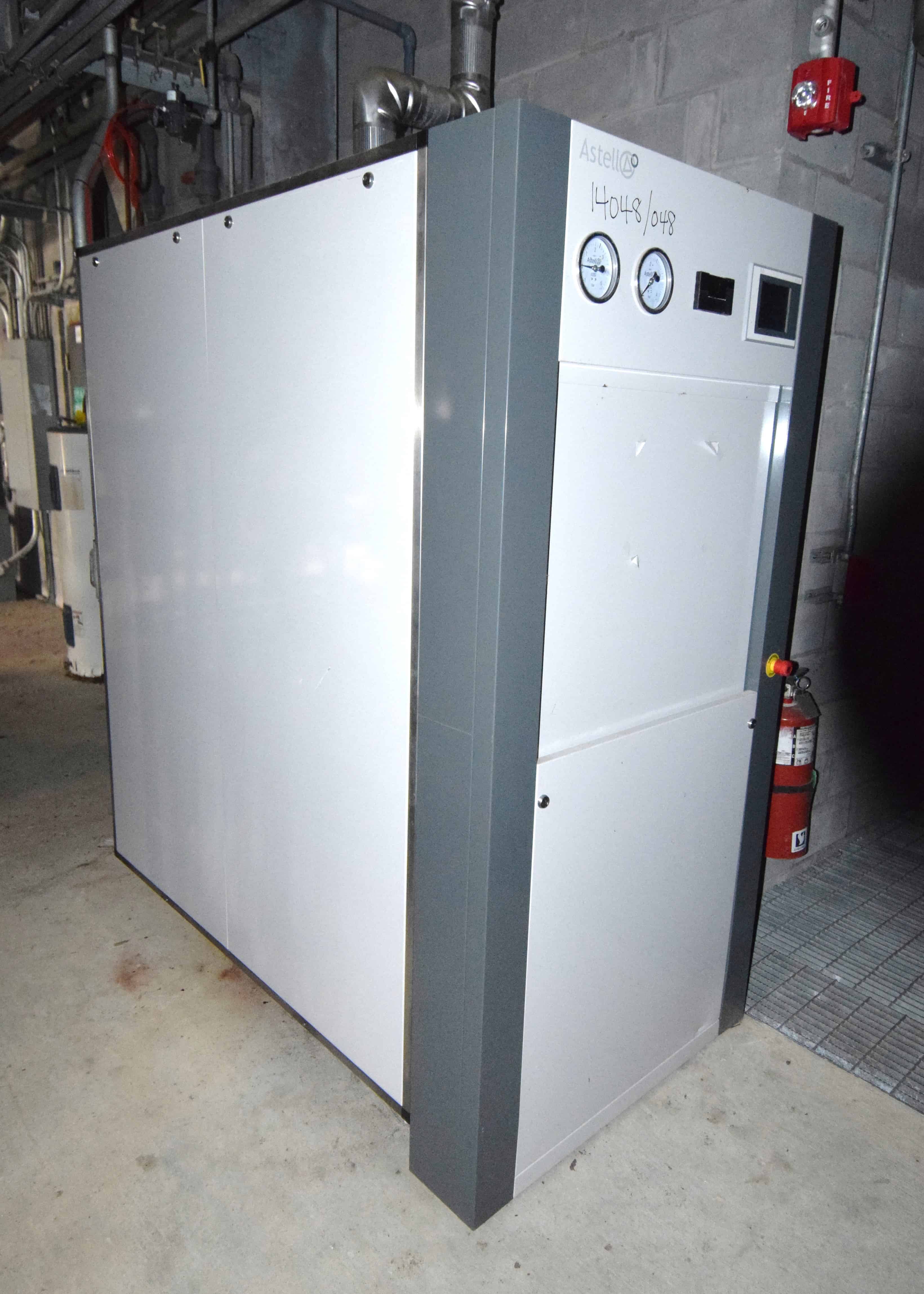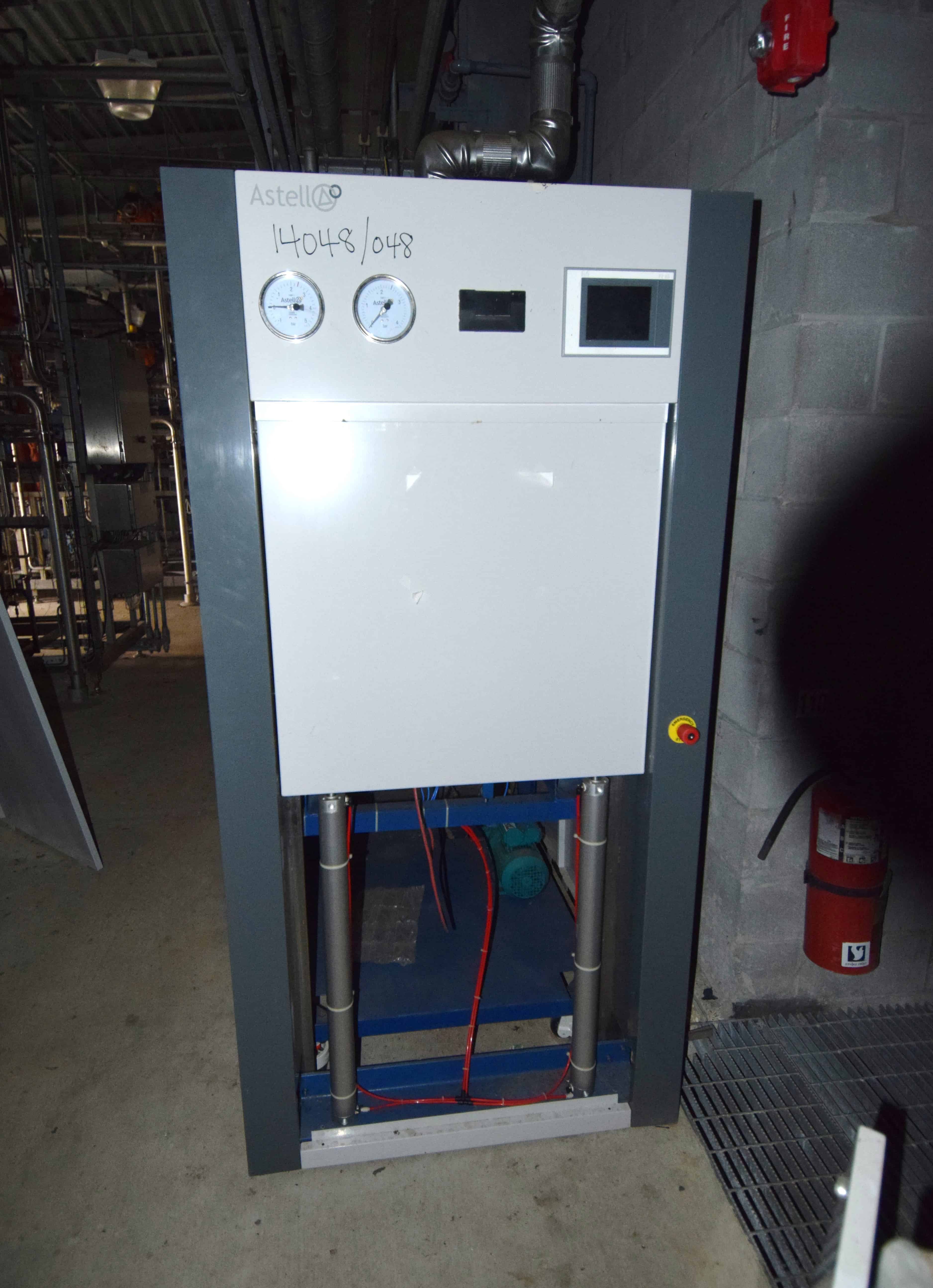 Used Astell Scientific Autoclave, Model U-AVS431D-16559. 316L Stainless steel chamber approximate 26" x 26" x 39" deep, volume 431 liters, internal rated 2.88 bar (41.8 psi) at 143 degrees C (289.4 F), 304 stainless steel jacket rated 2.88 bar (41.8 psi) at 143 degrees C (289.4 F). Serial# PDN40388, built 2014. Certified by Biotechnik, National Board# 219, serial# 8987, year 2014.