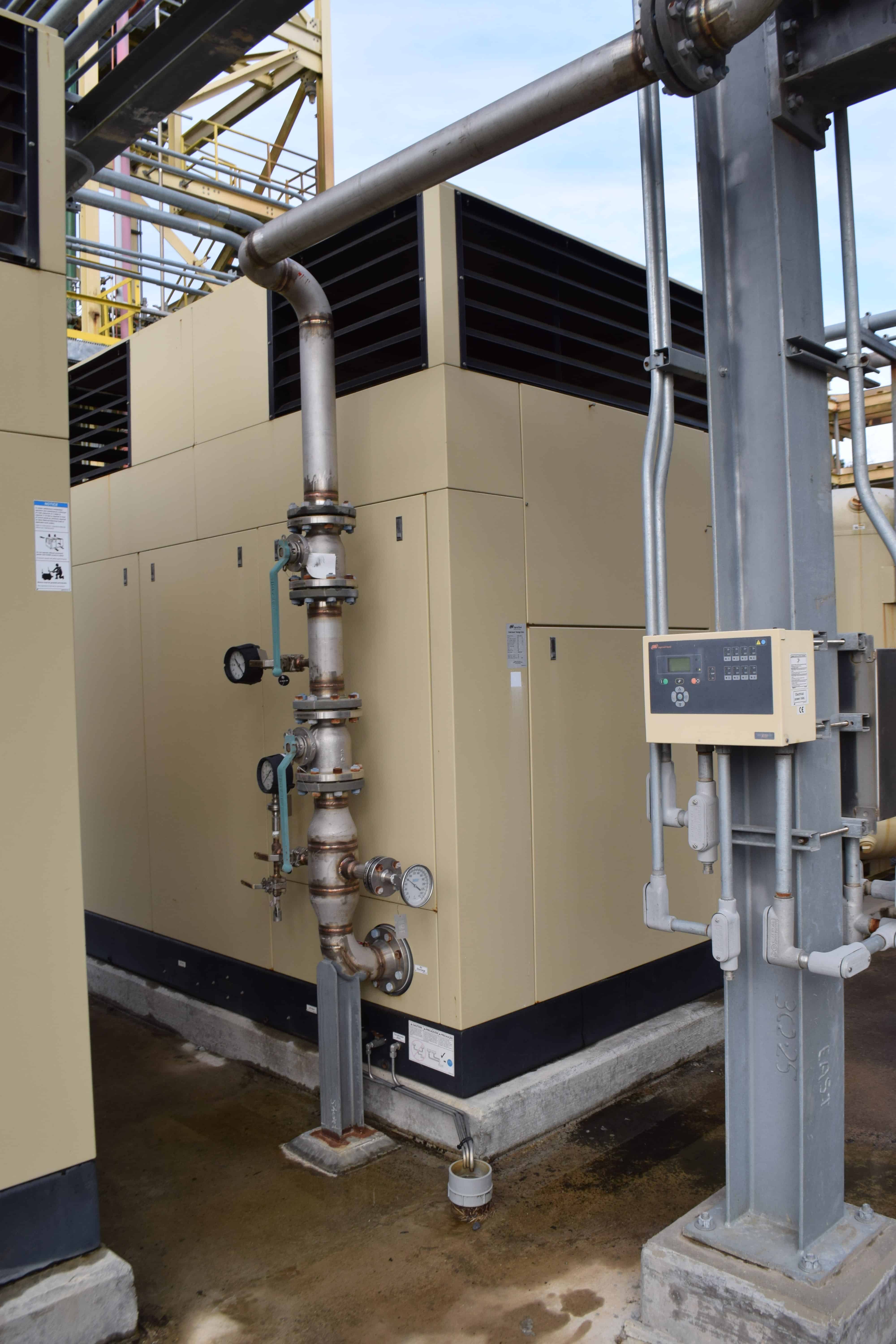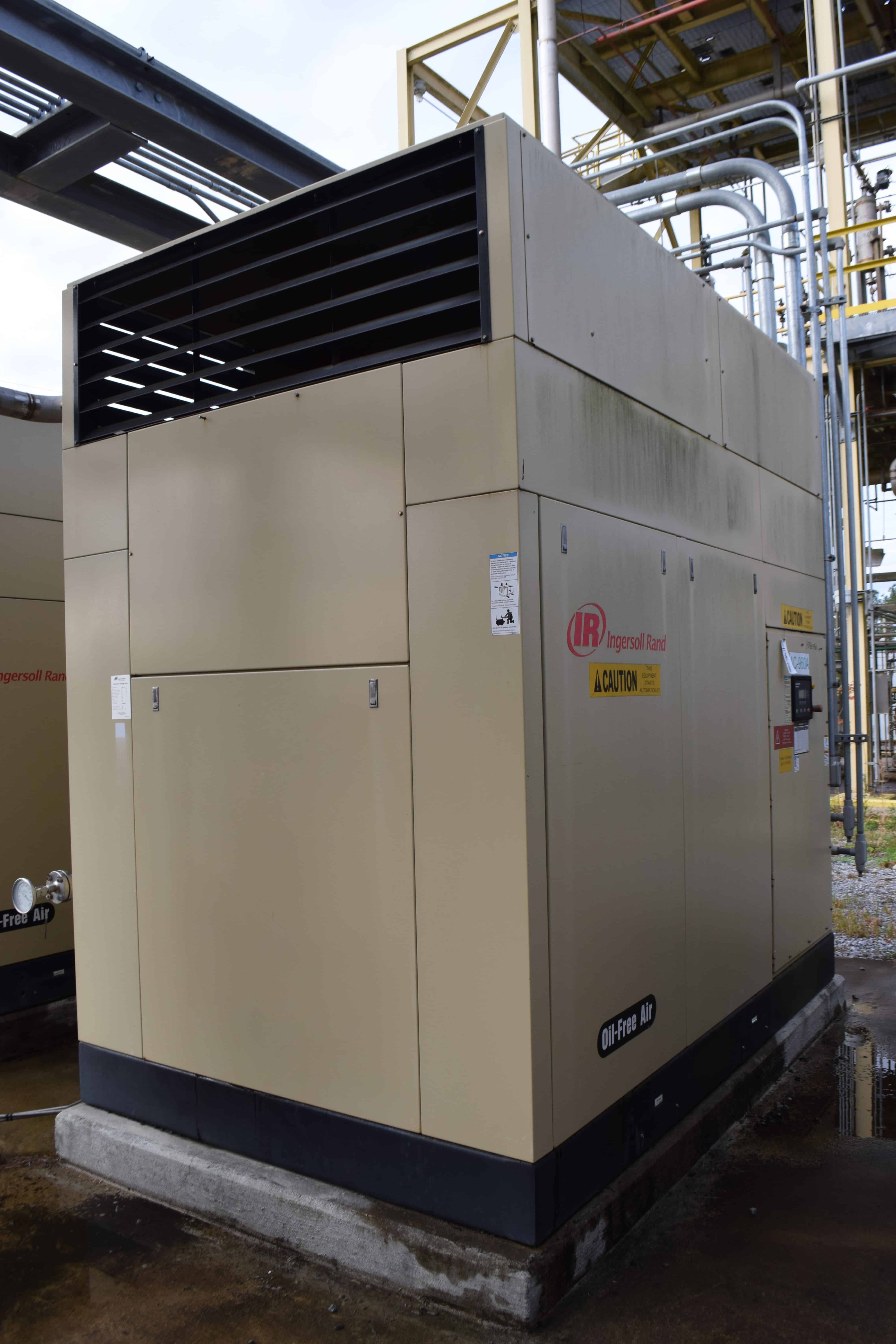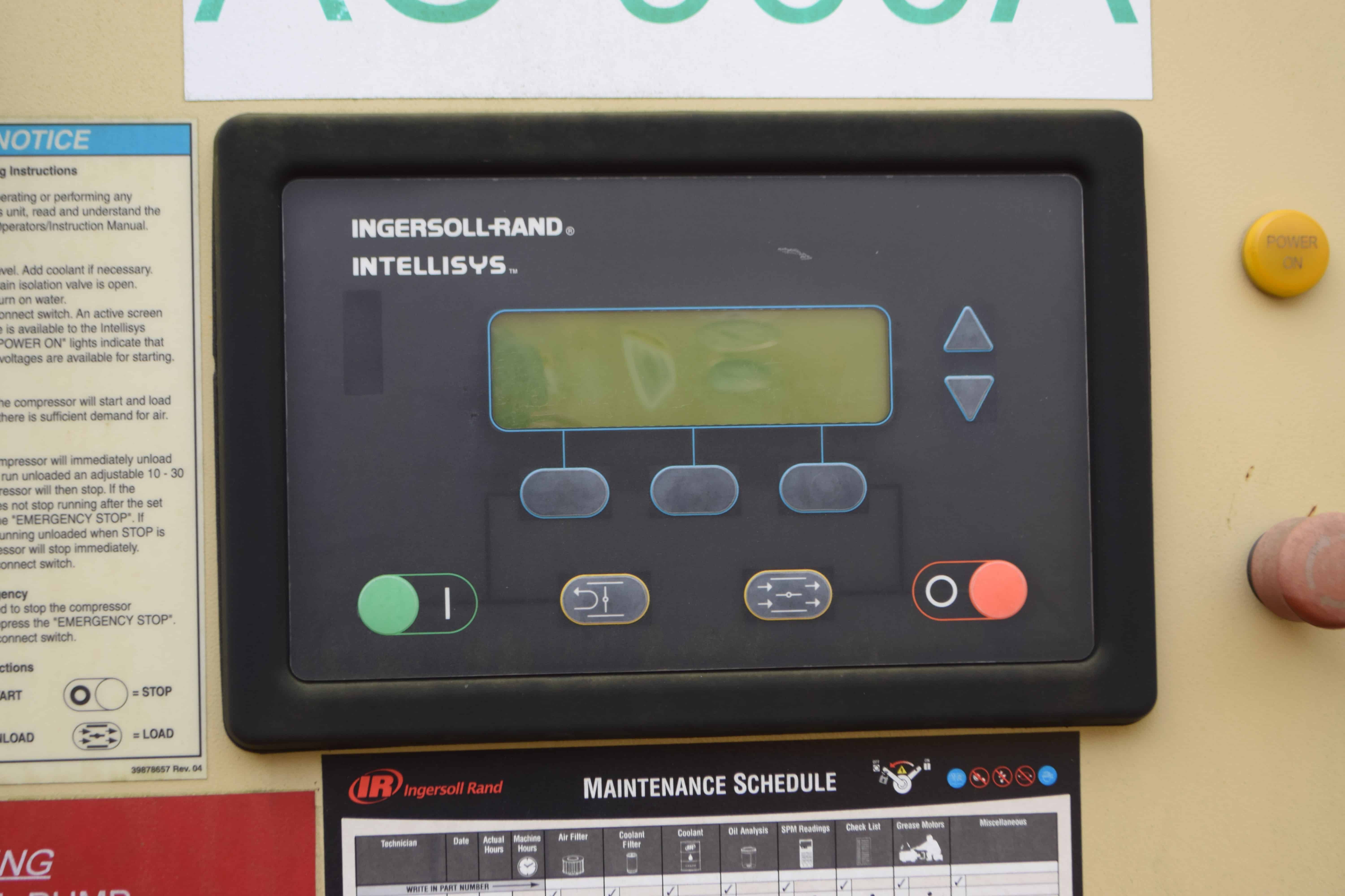 Used Ingersoll-Rand Sierra Air Cooled Rotary Screw Air Compressor, Model H350A. Capacity 1501 CFM, rated operating pressure 125 psig. Driven by a 350hp, 3/60/460 volt, 1788 rpm motor. Includes an Intellisys VSD-MA control panel and an Allen-Bradley PowerFlex 755 VFDl. 23377 Hours used on meter. Serial# TS6980U12080.