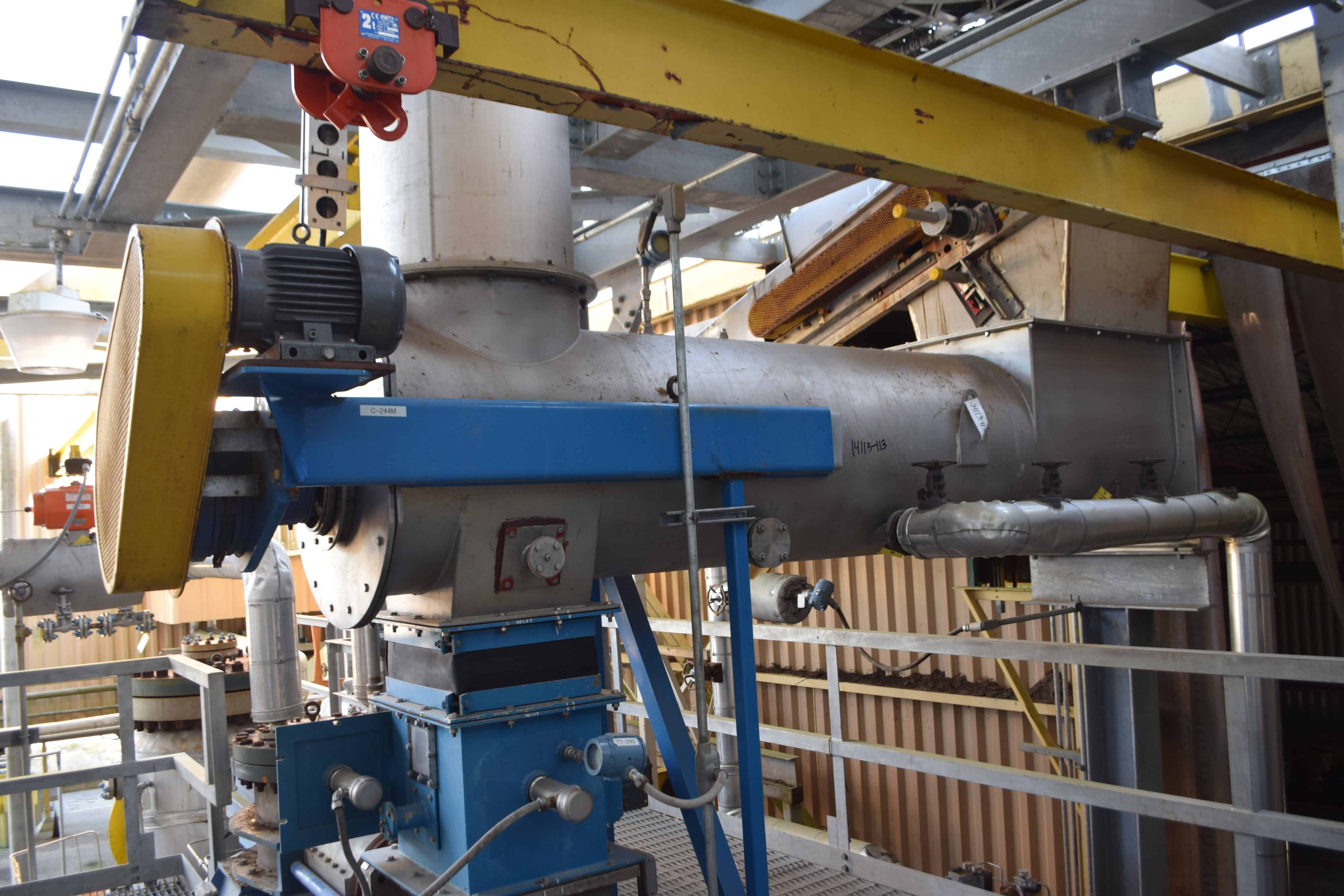Used Sun Opta Digester Hydrolizer System Consisting Of: (1) Metso single screw feed conveyor, approximate 30” diameter x 132” long, driven by a 3hp motor with reducer, (1) Metso single screw plug feeder, approximate 12” diameter x 72” long, driven by a 75hp motor with Falk reducer, ratio 55.78 to 1, (1) Axton high shear mixer, Hastelloy SB-575 construction, rated 300 psi at 420 degrees F., National Board# 558, serial# 71686, built 2013 with a 50hp motor, (1) Sermati 36” diameter x 348” long digester, Incoloy 825 product contact areas, rated 350 psi at -20 to 480 degrees F., driven by a 15hp motor with reducer, (1) discharge screw driven by a 25hp gear motor, (1) Troy Boiler Works cyclone, 316L stainless steel, rated 100 psi at 400 degrees F, National Board# 591, serial# 774, built 2008, (1) Young Industries 24” rotary valve, driven by a 2hp gear motor, serial# HC-9663.