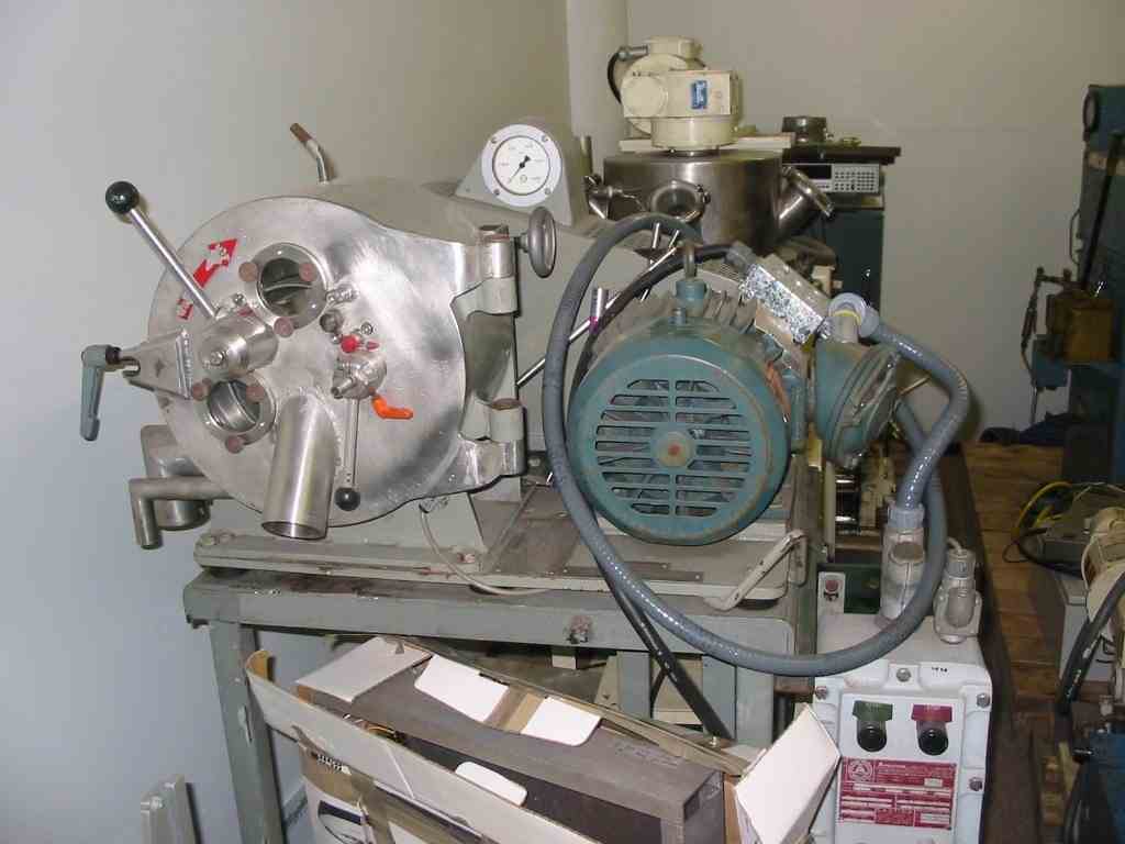 Used 10" Krauss Maffei Model HZ-25 Horizontal Peeler Centrifuge, Stainless Steel construction, Rotary Siphon style Basket, 10" dia. Solid bowl, peeler knife, 2.5 liter basket cap, 1cu.ft. cake (4.95kg), max bowl speed 4000 RPM, unit driven by 3 Hp., 3/60/230- 460 volt, explosion proof motor, mounted on base.