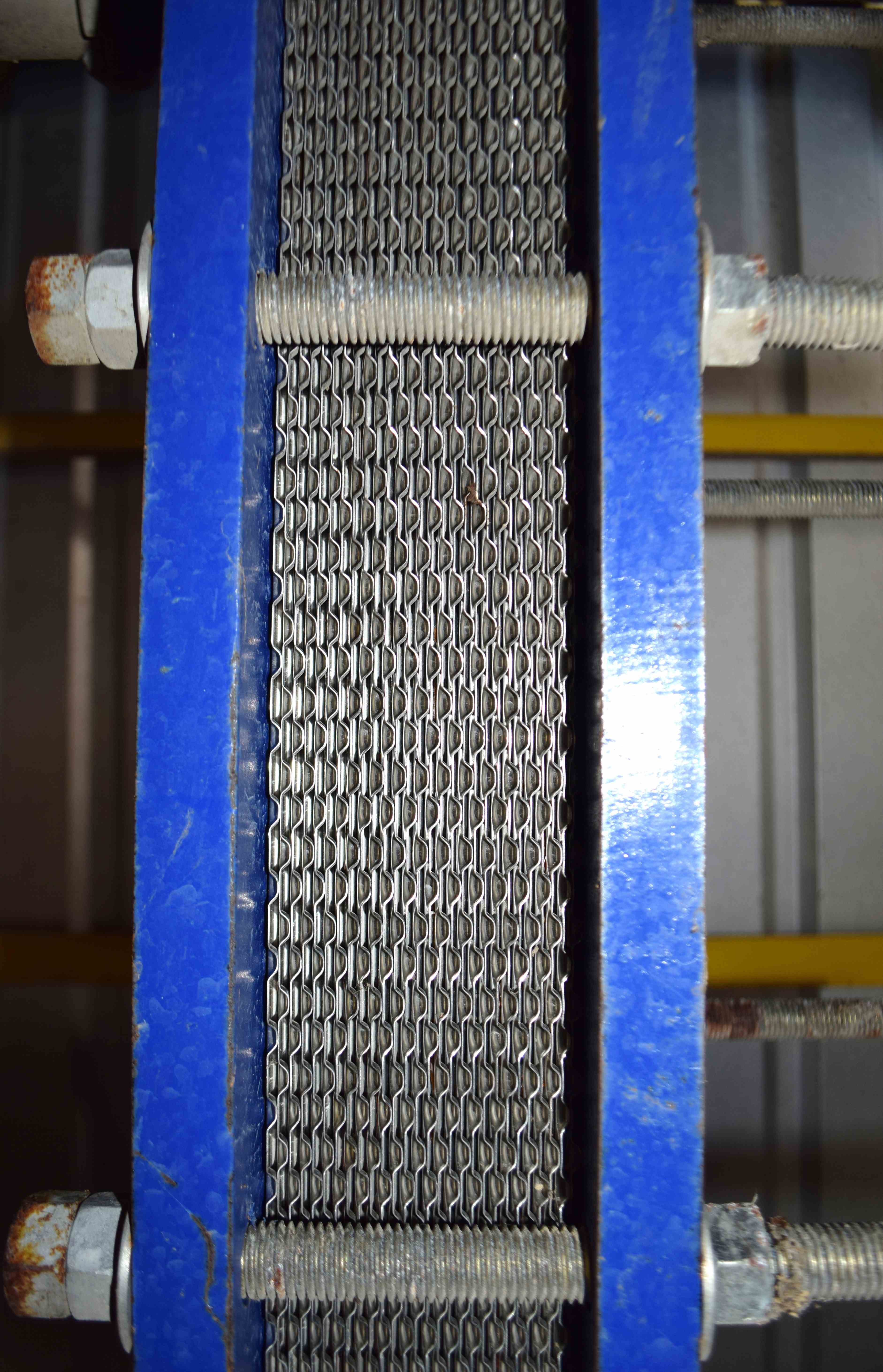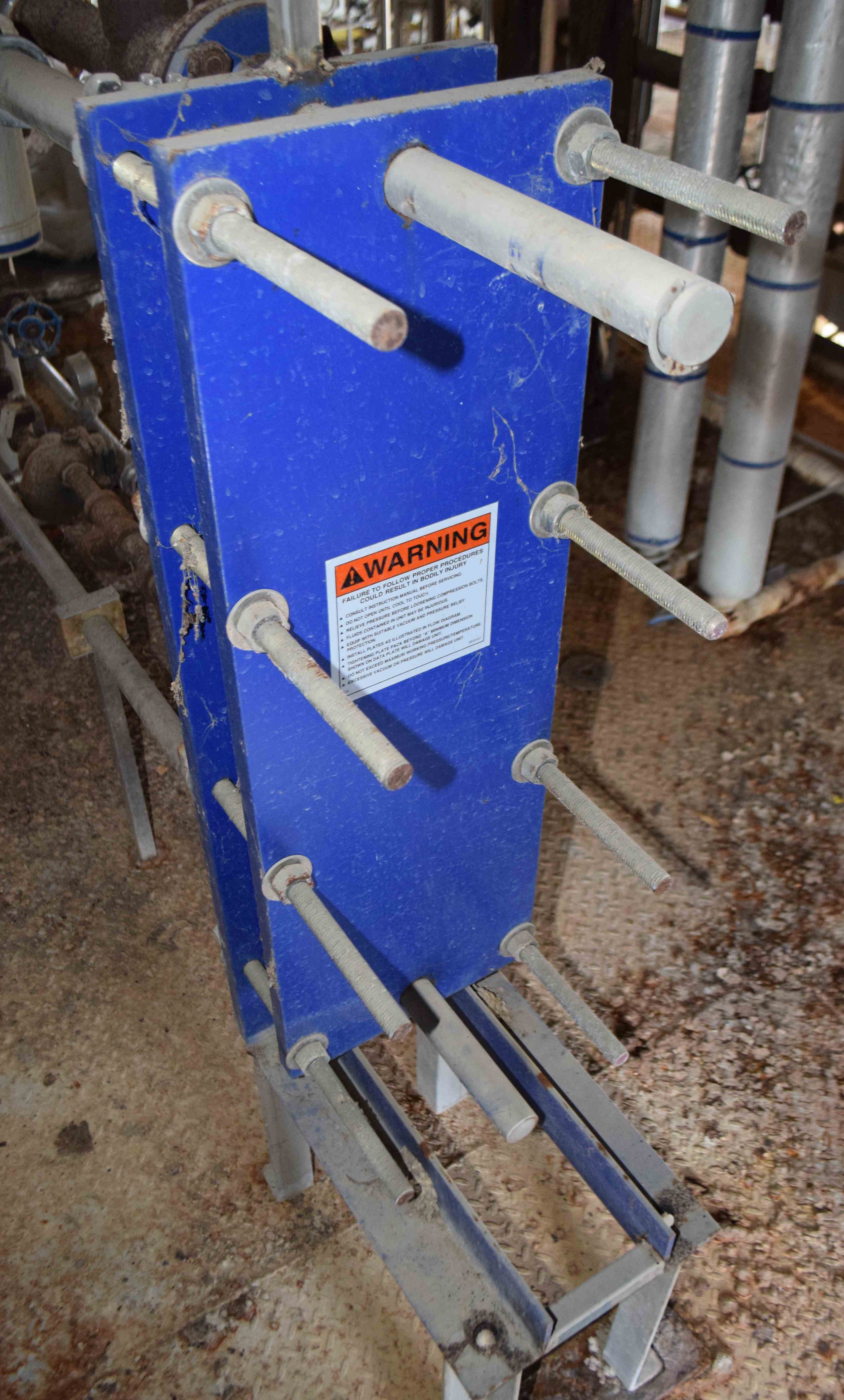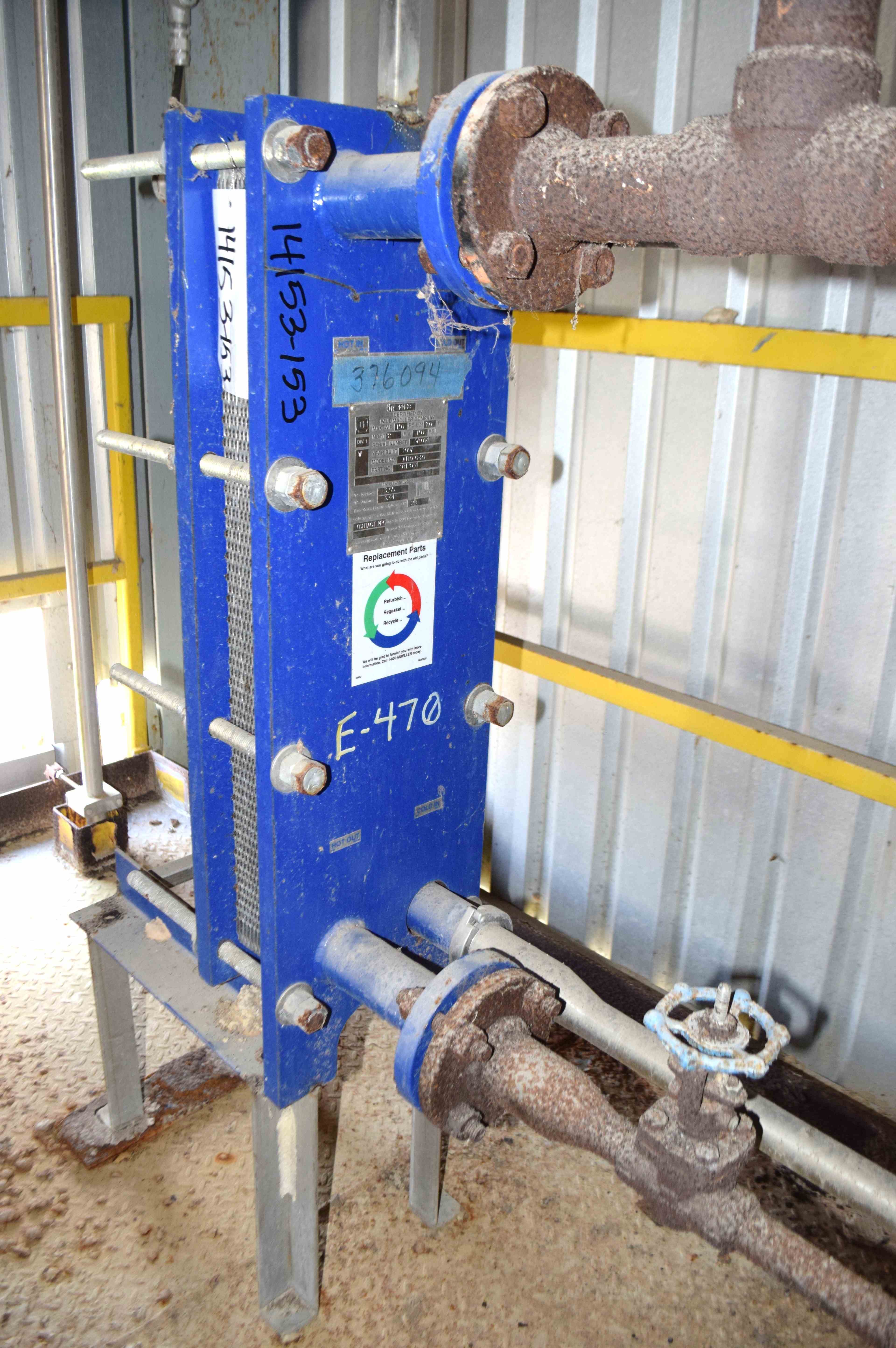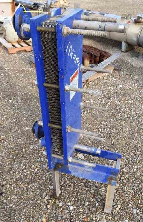 Rated 150 psi at 32 to 300 degrees F. 2" Inlets & outlets, expandable carbon steel frame. Serial# 376094, National Board# 44438, built 2007.