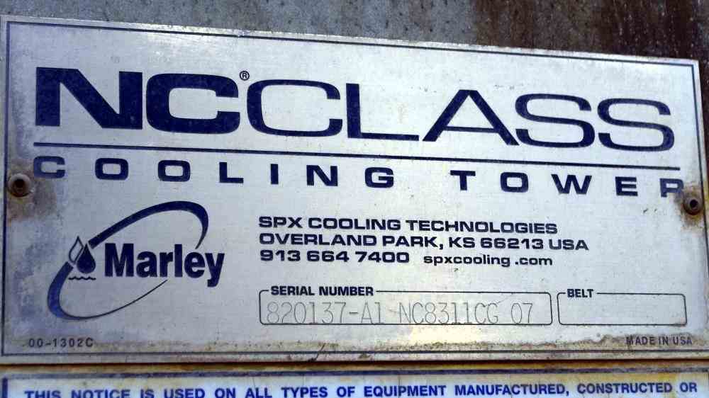 Used- Marley NC Class Cooling Tower, Approximate 849 Nominal Tons, Model NC8311G2CG. Galvanized housing, stainless steel bottom pan. Serial# NC-820137-A1, built 2007.
