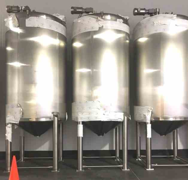 UNUSED Feldmeier 2400 Gallon 316L Stainless Steel Mix Tanks. Tanks are single wall are complete with mixers and have top manway access. Dimensions 17.5' tall X 6'7" dia. Manufactured 2015.