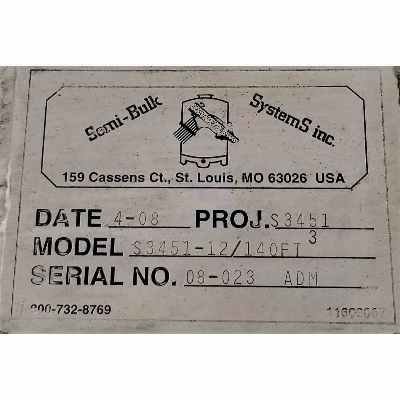 Stainless Steel Bulk Bag Supersack Unloader 140 Cubic Foot Hopper. Model S3451-12/140FT3. Serial Number 08-023, Date 4-08. Wire mesh bag catch on interior. 13.62" dia sleeve for bulk bag spout. 6" dia vent port. 24" dia flanged bottom discharge.