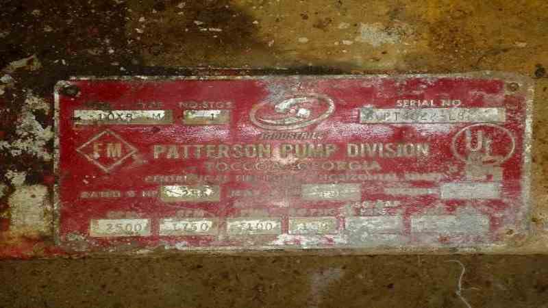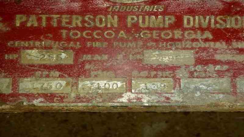 Used 2500 GPM Fire Pump with Cummins engine. Pump - Single Stage Patterson Pump 10x8 Type M. 2500 GPM @1750 RPM. Rebuilt 2016. 5 hrs after engine break in. Serial #8UPT4S22. Engine - Cummins NT-855-FI Engine. 255HP at 1750 RPM Serial number 10905864.
