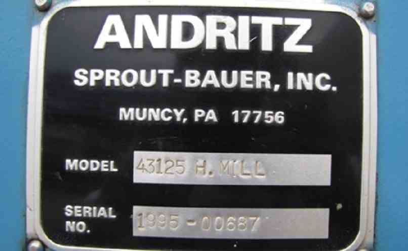 Used 150 HP Andritz Sprout Bauer Hammermill, Model 43125. /N 1995-00687. 150 HP Reliance XE energy efficient extra tough motor, 1785 rpm, 460 volt, 445t frame. 8" x 13" inlet. Weight = 5,920 lbs.