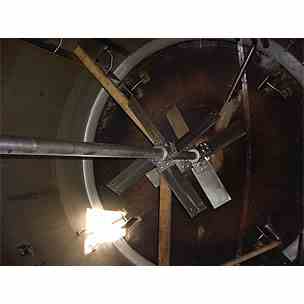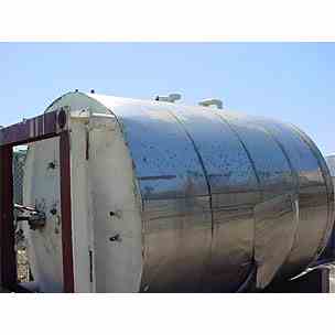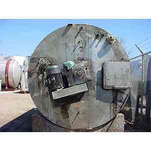 Used 4800 Gallon 316-SS vertical, jacketed Mix Tank. Flat top, cone bottom. 9' dia x 11' 6" straight side, 16" bottom cone (OAH: 15" 6") Dimpled jacketed side and bottom rated for low pressure., w/ 304-SS insulated exterior shell Square Top manway, and additional top nozzles, 3" CBO. Bridge mounted 20 HP, 230/460V, Lightnin three blade Agitaor. Internal baffles. Mounted on I-beam platform w/ load cells.
