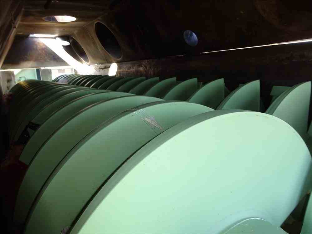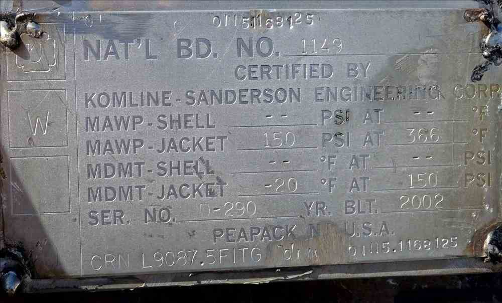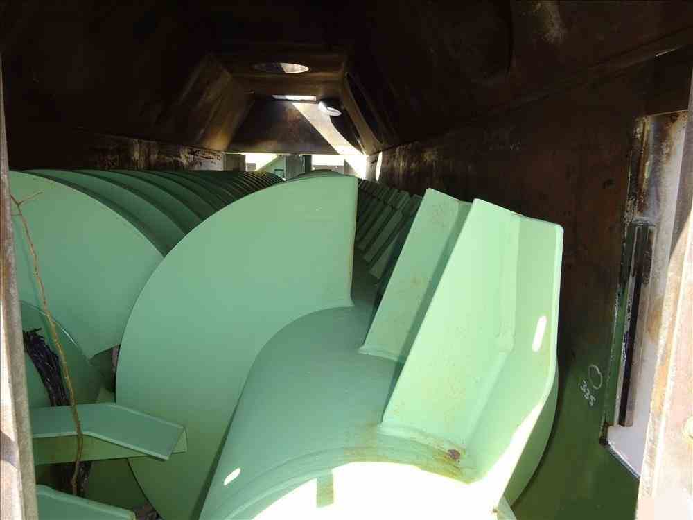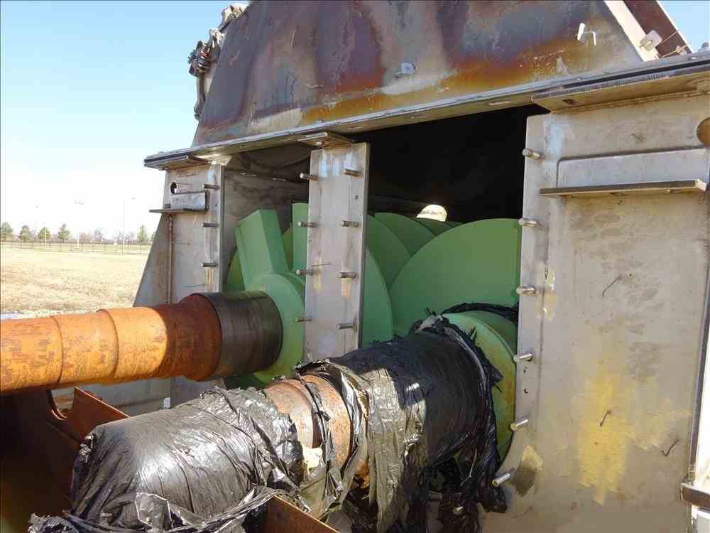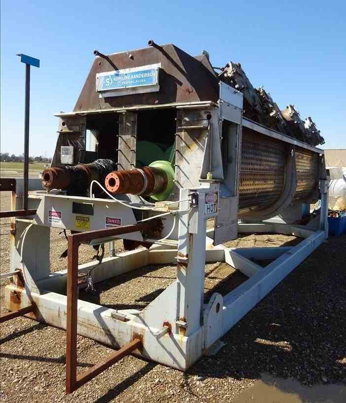 Used Komline Sanderson NARA Paddle Dryer/Processor, Model NPD-9W-800. 316L stainless steel jacketed trough approximately 228" long x 65" wide x 45" deep, 800 square feet of heat transfer area, rated 150 psi at 366 degrees F. (2) 36" Diameter x 228" long carbon steel cored screws, rated 150 psi at 366 degrees F. 48" x 13" end bottom outlet with air operated slide gate valve. Driven by a 75 HP, 3/60/230/460 volt, 1780 rpm motor thru SmCyclo 59:1 ratio. Includes a bolt down top cover with 3 manways: (1) 16", (1) 18" x 18". Mounted on a carbon steel frame.