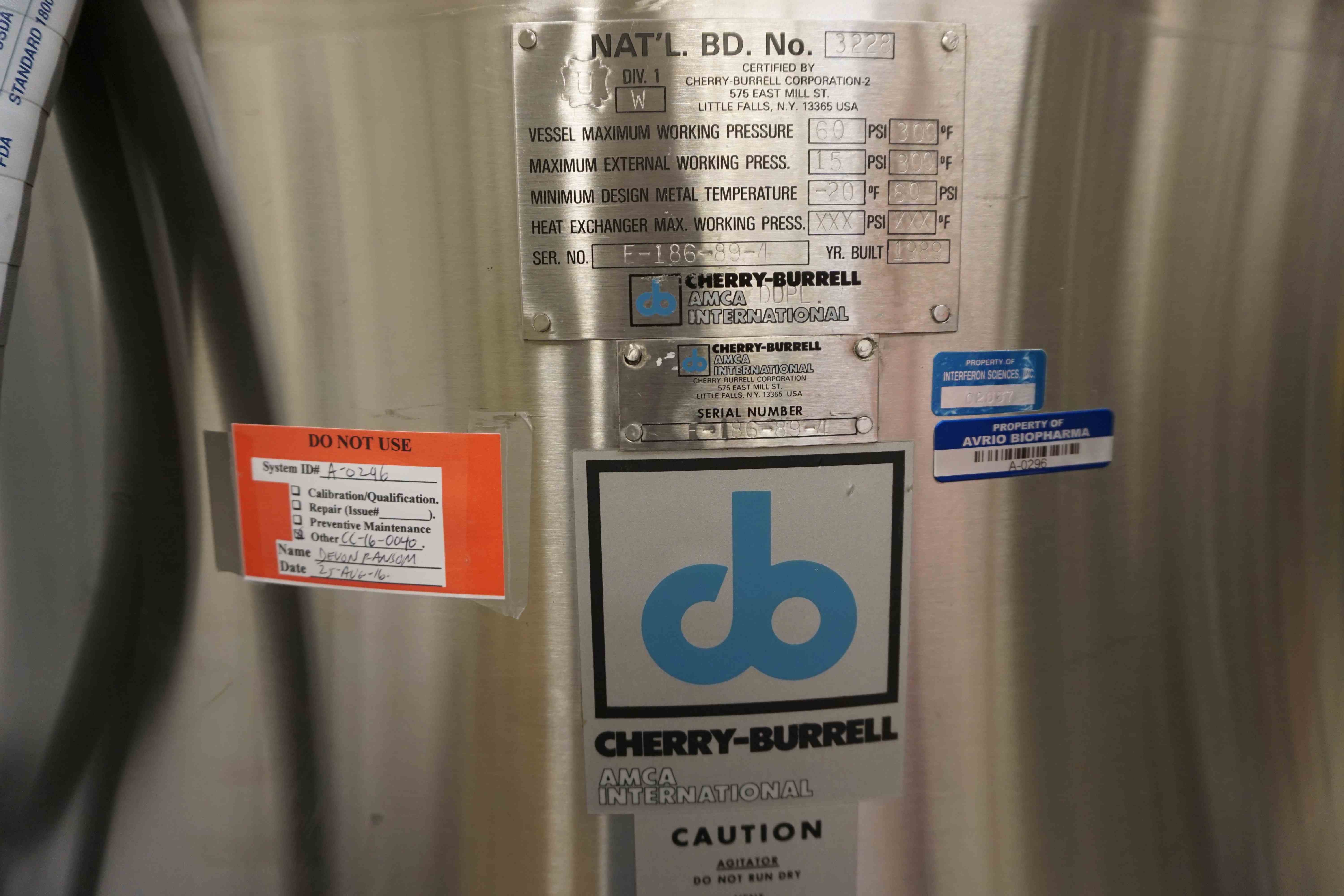 Used 700L (184 gal) Cherry Burrell SS Reactor. Agitation new in 2016. Rated 60PSI@ 300F. Serial #E-186-89-4. Built 1989.