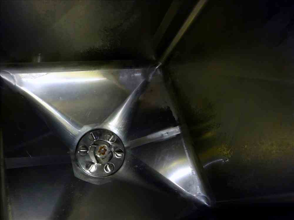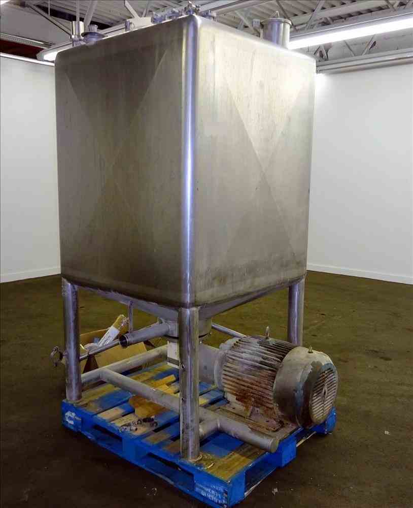 Used 300 Gallon APV Liquiverter/Likwifier. Model CLV, 316L Stainless Steel. Non-jacketed tank approximate 40" long x 36" wide x 44" deep. Approximate 12" diameter bottom impellar, includes spare impellar. Driven by a 30hp, 3/60 motor. Openings top: (3) 1-1/2", 2", 2-1/2", 4", 6", 12", 18" with cover. 2" Side bottom outlet. Mounted on (4) stainless steel legs, and a stainless steel frame. Serial# K-2626