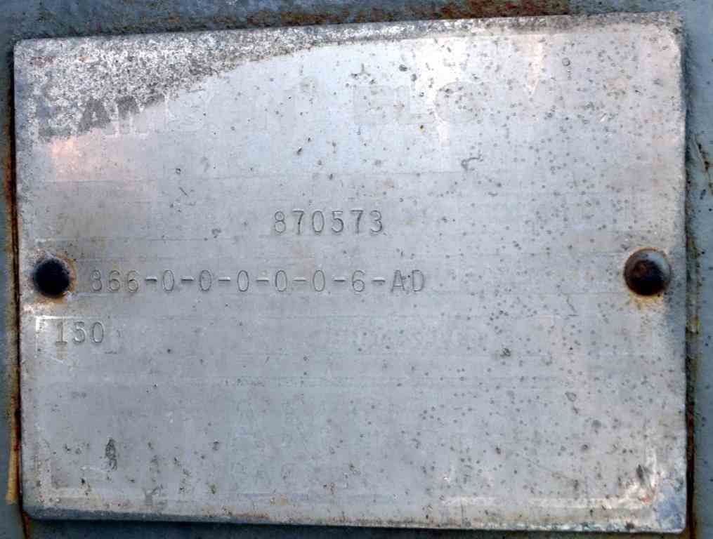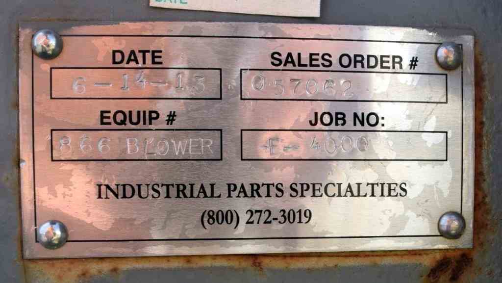 Used Lamson Blower, Catalog# 866-0-0-0-0-0-6-AD, Carbon Steel. Driven by a 150hp, 3/60/460 volt, 3570 rpm motor. Mounted on a frame. Serial# 870573.