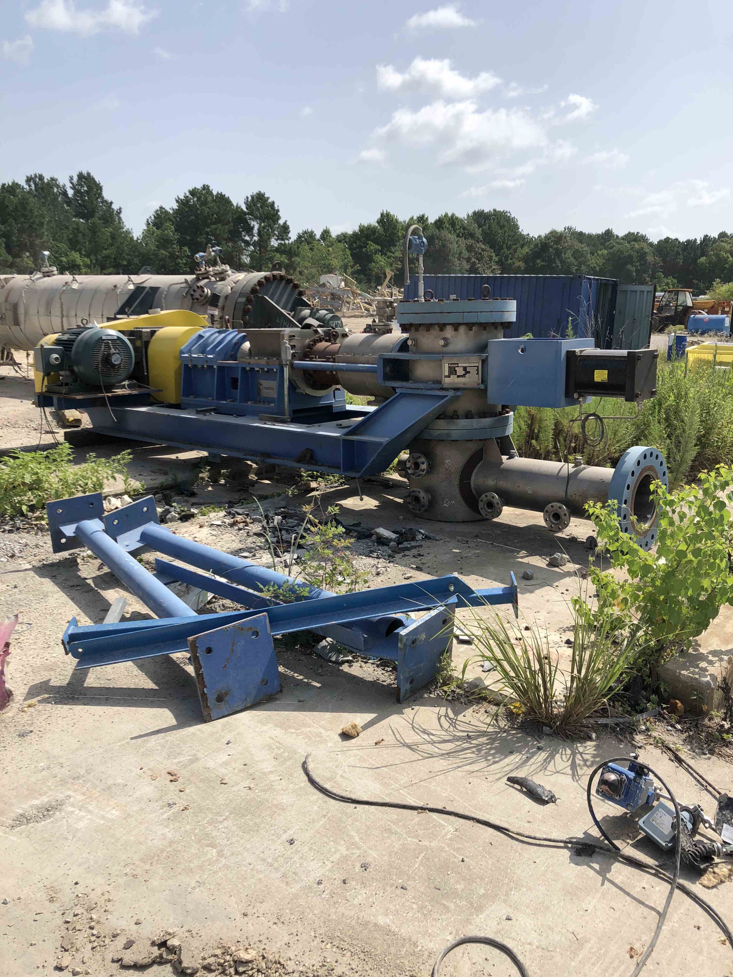 Used Metso single screw plug feeder. Approximate 12” diameter x 72” long. 75hp motor with Falk reducer, ratio 55.78 to 1. Axton Hastelloy SB-575 high shear mixer. Rated 300 psi at 420 degrees F. 50hp motor. National Board# 558. Serial# 71686. Built 2013.