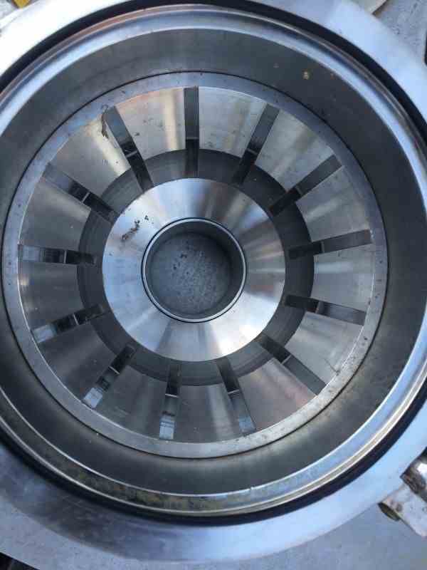 Used Fryma Colloid Mill, type MZ-80/A, all stainless steel contacts, 2" inlet & 2-1/2" outlet. Delmix grinding set. Unit is driven by a 2.2kW (3 HP) 480V, 3460 RPM motor direct connected to milling blade. Unitized on stainless steel portable base with hand-crank hoist. Serial# M16431. Very good condition.