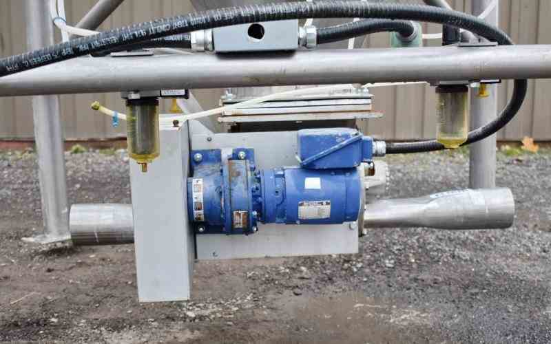 MODEL 10 D, MOTOR: 0.25 HP, 230/460 VOLT, OUTPUT RPM: 8.97. 4" BLOWTHROUGH TYPE OUTLET. TWO TOP LIFTING LUGS, ON FOUR STAINLESS STEEL LEGS WITH PADS (OVERALL HEIGHT: 11') PREVIOUS USE: BAKERY (FLOUR)