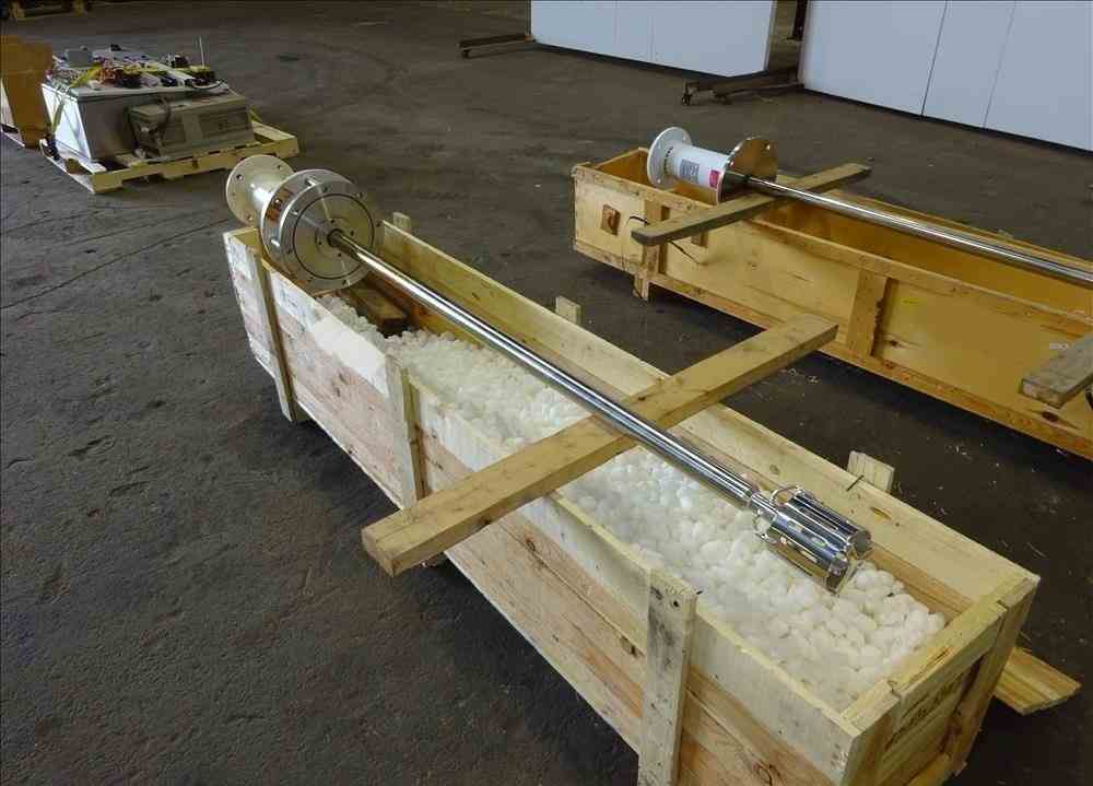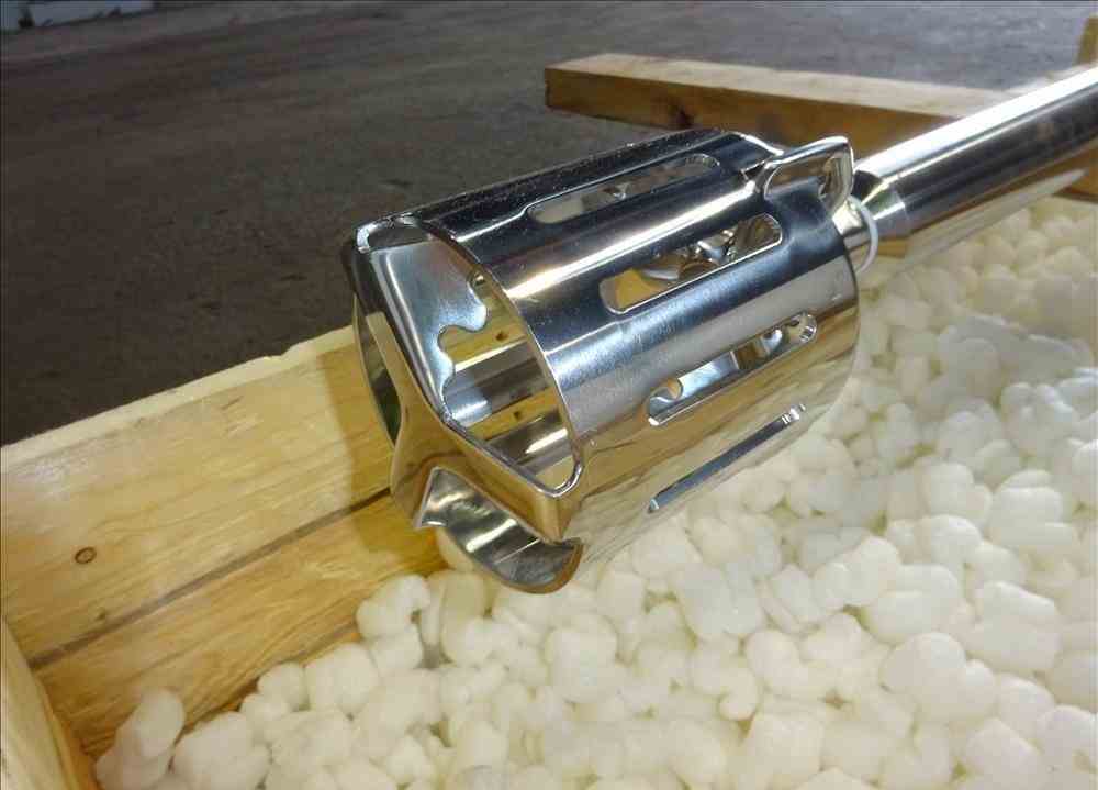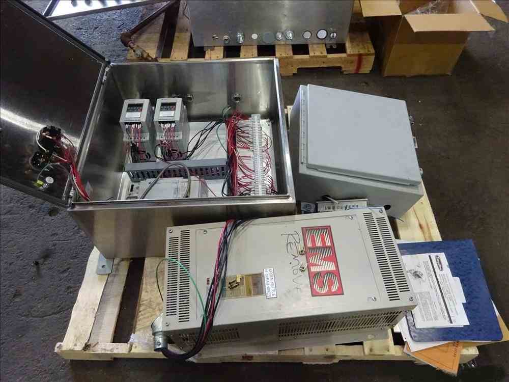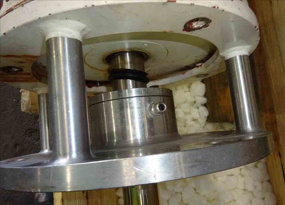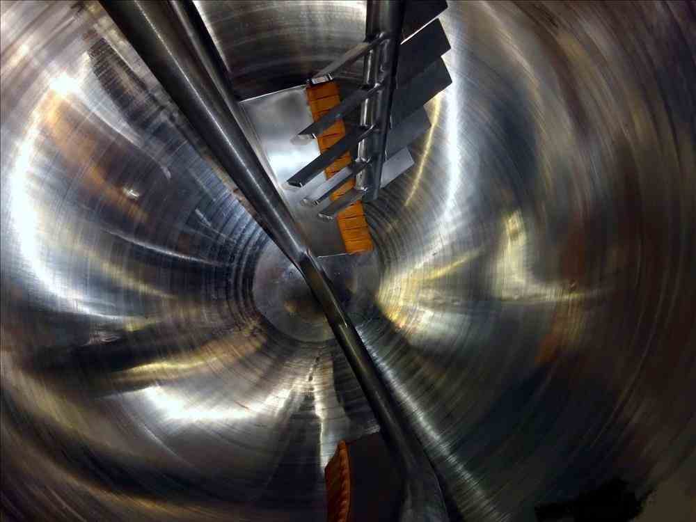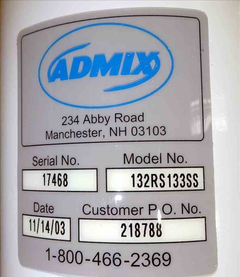 Used Groen Triple Motion Scraped Surface Vacuum Kettle, Model TA300 V/P, 300 Gallon, 316 Stainless Steel, Vertical. Approximate 54" diameter x 54" straight side, dish top and bottom. 304 Stainless steel jacket rated 100 psi at -20 to 338 degrees F, full vacuum to 25 psi. Top center entering scraper style agitator with bottom and side scrapers, driven by a 5 HP, 3/60/230/460 volt, 1680 rpm motor with 58.32:1 gearbox ratio. Top offset entering bar type agitator, driven by a 3 HP, 3/60/230/460 volt, 1720 rpm motor with 22.05:1 gearbox ratio. (1) Spray ball. Openings top: 16" manway with cover, 10", 4", 3", (2) 2", approximate 3" and 5" agitator openings with mechanical seal. 3" center bottom outlet with ball valve. Hydraulic top cover tilt. (1) Admix Rotosolver high shear mixer, Model 132RS101, Serial # 08838, 316 stainless steel, approximate 2" diameter x 64" long. (1) Admix Rotosolver high shear mixer, Model 132RS133SS, Serial # 17468, 316 stainless steel, approximate 2" diameter x 69" long, driven by a 15 HP, 3/60/208-230/460 volt, 3450 rpm motor. Control panel with EMS drive and Allen-Bradley Micro-Logix 1500 PLC. Serial # 96864-1, National Board# 138722. Built 1993.