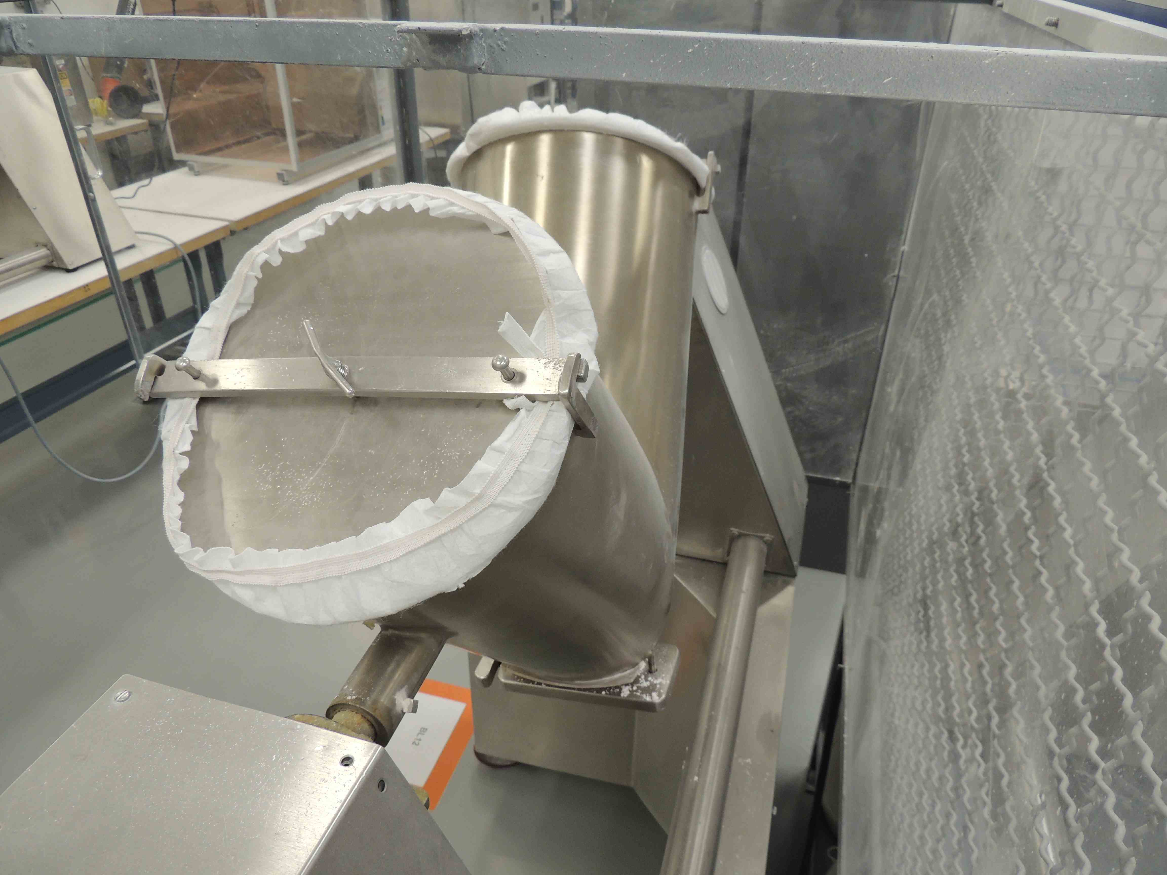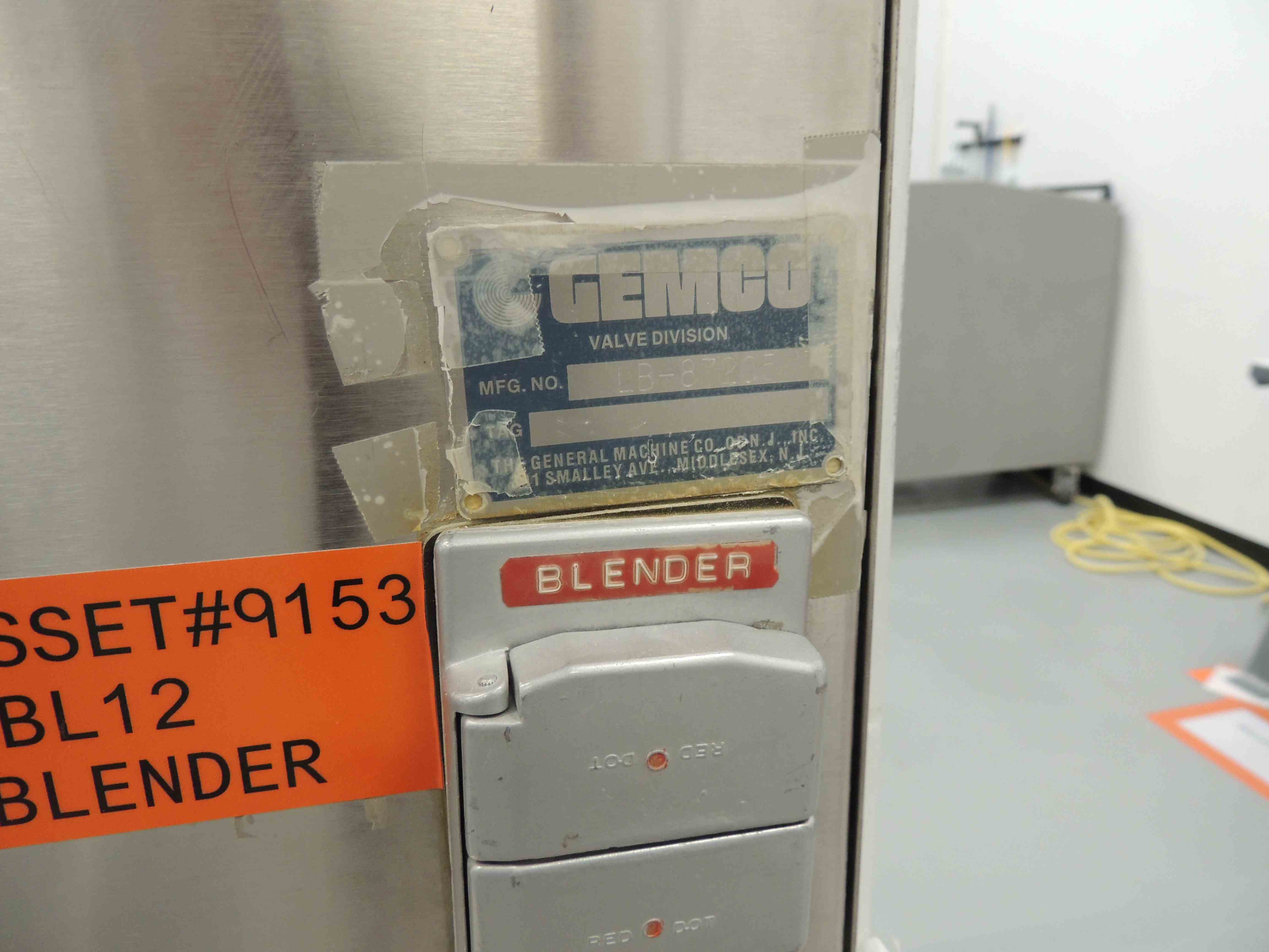 Used 1 Cu Ft Gemco SS V-Blender. Kynar Lined. 2HP main motor. 1/2 HP removable agitator. With Plastic Guard and SS Stand w/casters. Mfg #LB-87205.