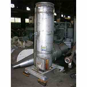 Used 9'6" APV Anhydro spray dryer, type III #6, 9'6" diameter, 9'7" straight side, flat bottom, stainless steel construction, model CB-160 Anhydro centrifugal atomizer with 5 HP AC motor, bottom and side air broom with 7.5 HP blower and steam coil, gas fired air make up system with burner and gas train, size 800 primary stainless steel cyclone collector with 20 HP blower, size 450 secondary stainless steel cyclone collector with 7.5 HP blower, size 27 Ducon stainless steel scrubber, JOB# P-4572, new 1987.
