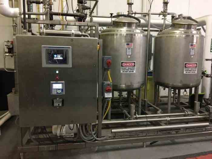 – CIP system with (2) 150 gallon stainless steel tanks